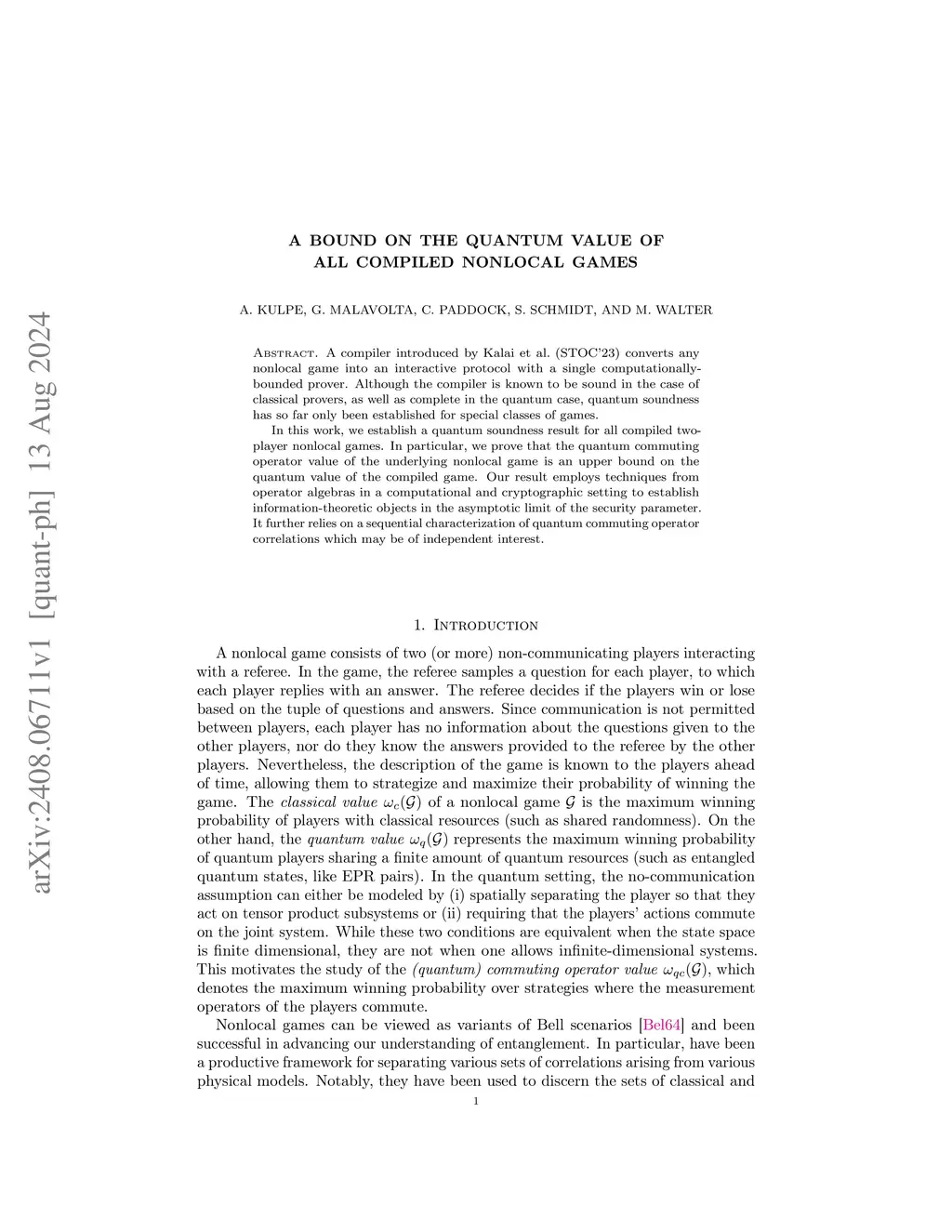 A cryptographic compiler introduced by Kalai et al. (STOC'23) converts any nonlocal game into an interactive protocol with a single computationally bounded prover. Although the compiler is known to be sound in the case of classical provers and complete in the quantum case, quantum soundness has so far only been established for special classes of games. In this work, we establish a quantum soundness result for all compiled two-player nonlocal games. In particular, we prove that the quantum commuting operator value of the underlying nonlocal game is an upper bound on the quantum value of the compiled game. Our result employs techniques from operator algebras in a computational and cryptographic setting to establish information-theoretic objects in the asymptotic limit of the security parameter. It further relies on a sequential characterization of quantum commuting operator correlations which may be of independent interest.