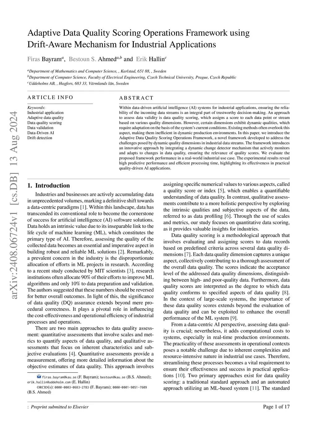 Adaptive Data Quality Scoring Operations Framework using Drift-Aware