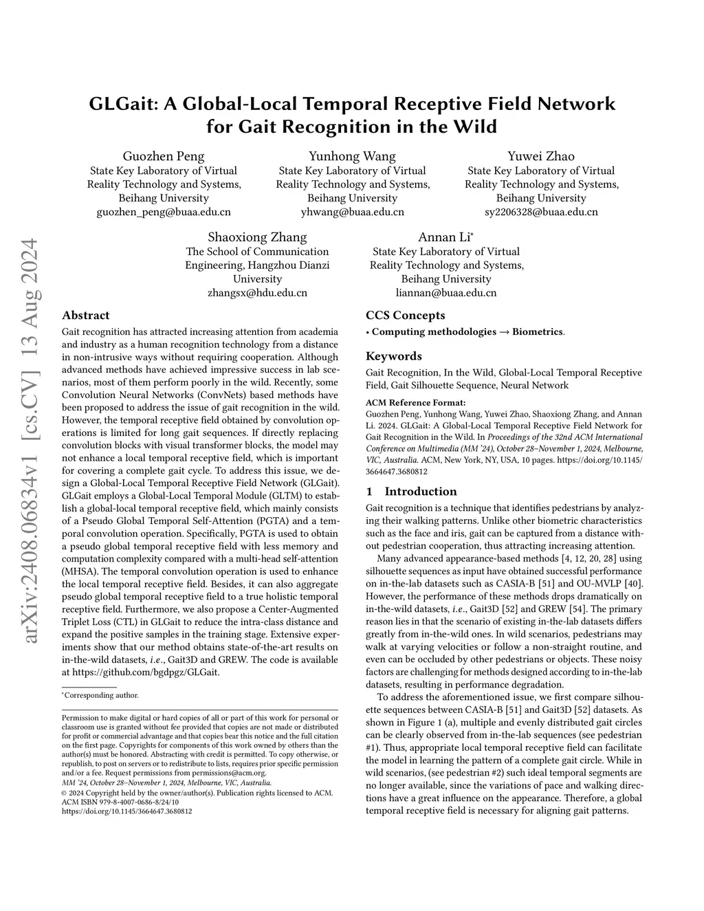GLGait: A Global-Local Temporal Receptive Field Network for Gait
