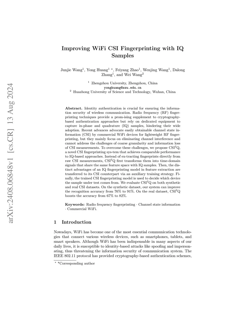 Improving WiFi CSI Fingerprinting with IQ Samples