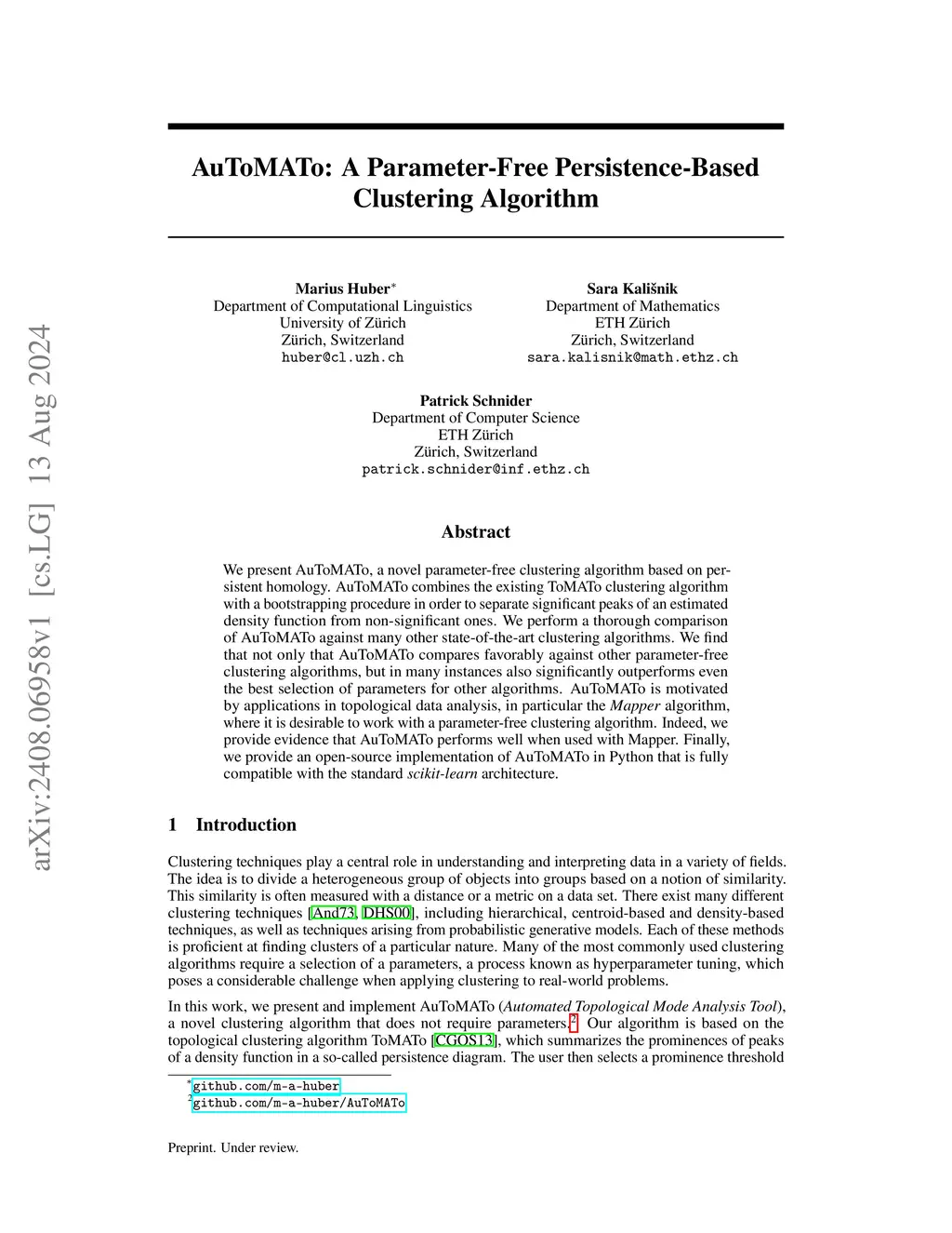 AuToMATo: An Out-Of-The-Box Persistence-Based Clustering Algorithm
