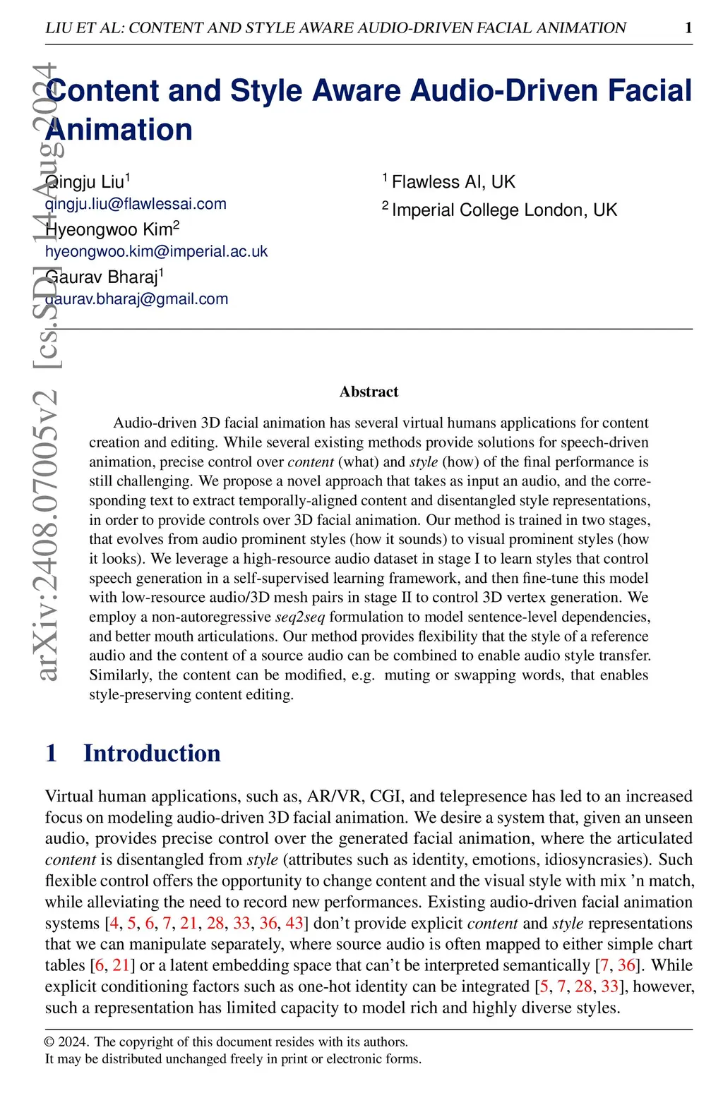 Content and Style Aware Audio-Driven Facial Animation