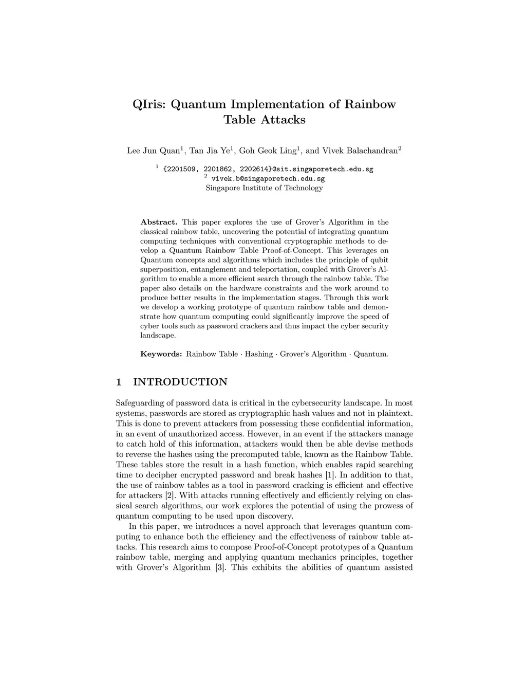 QIris: Quantum Implementation of Rainbow Table Attacks