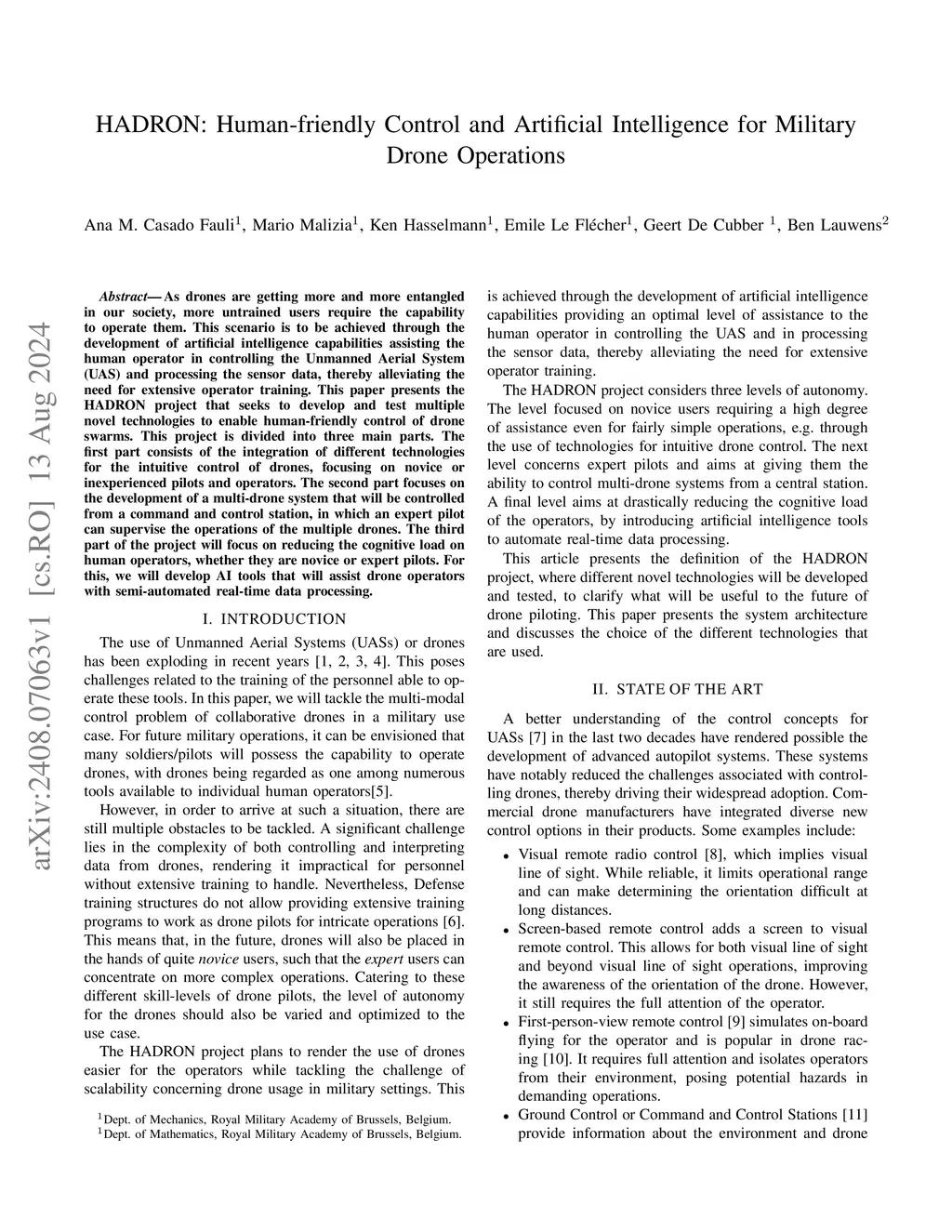 HADRON: Human-friendly Control and Artificial Intelligence for Military