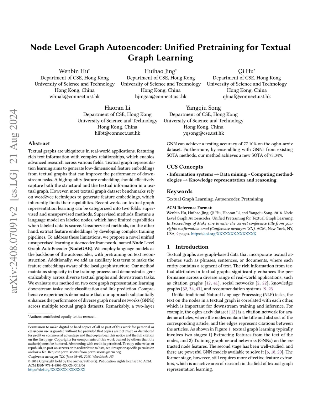 Node Level Graph Autoencoder: Unified Pretraining for Textual Graph