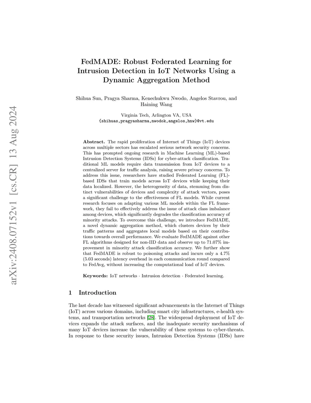 FedMADE: Robust Federated Learning for Intrusion Detection in IoT