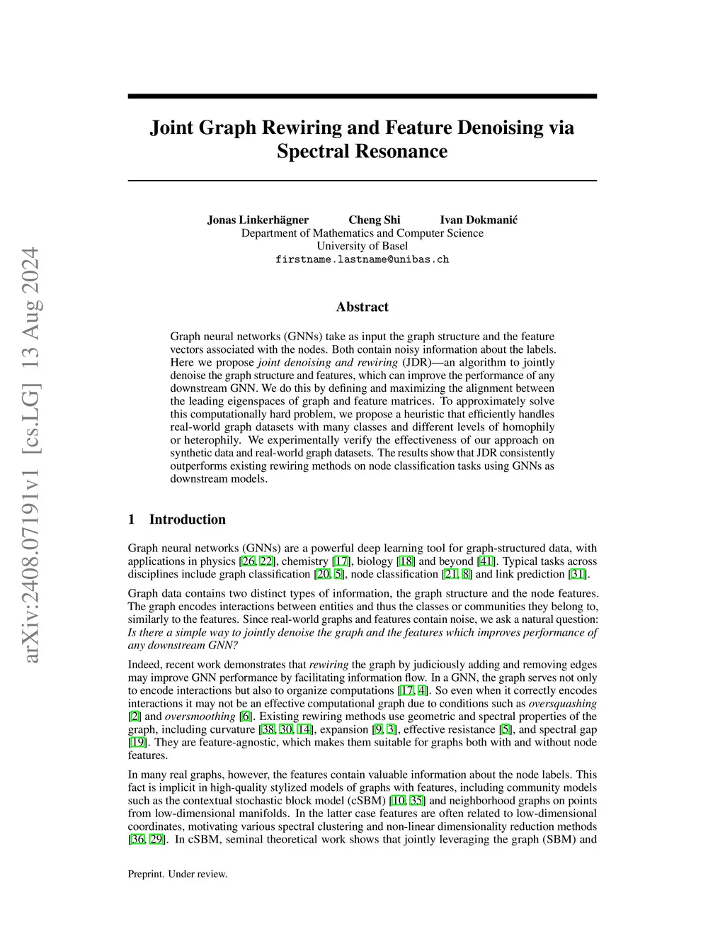 Joint Graph Rewiring and Feature Denoising via Spectral Resonance