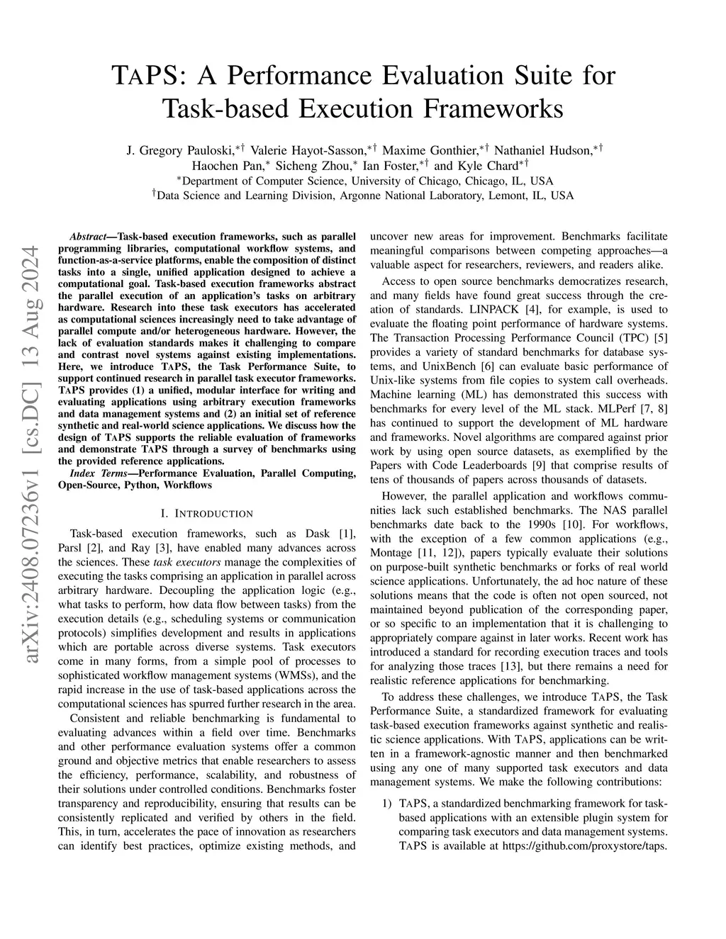 TaPS: A Performance Evaluation Suite for Task-based Execution Frameworks