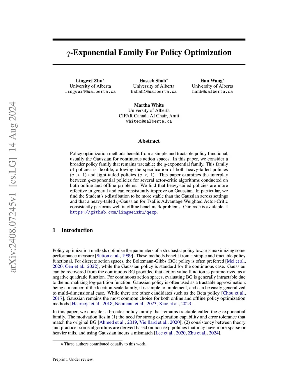q-exponential family for policy optimization