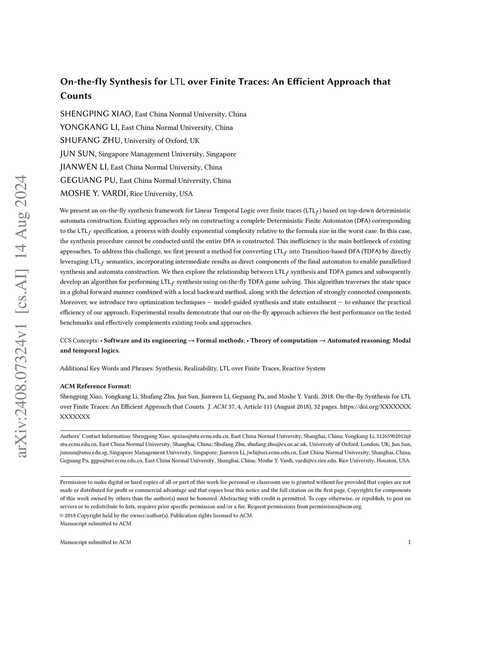On-the-fly Synthesis for LTL over Finite Traces: An Efficient Approach
