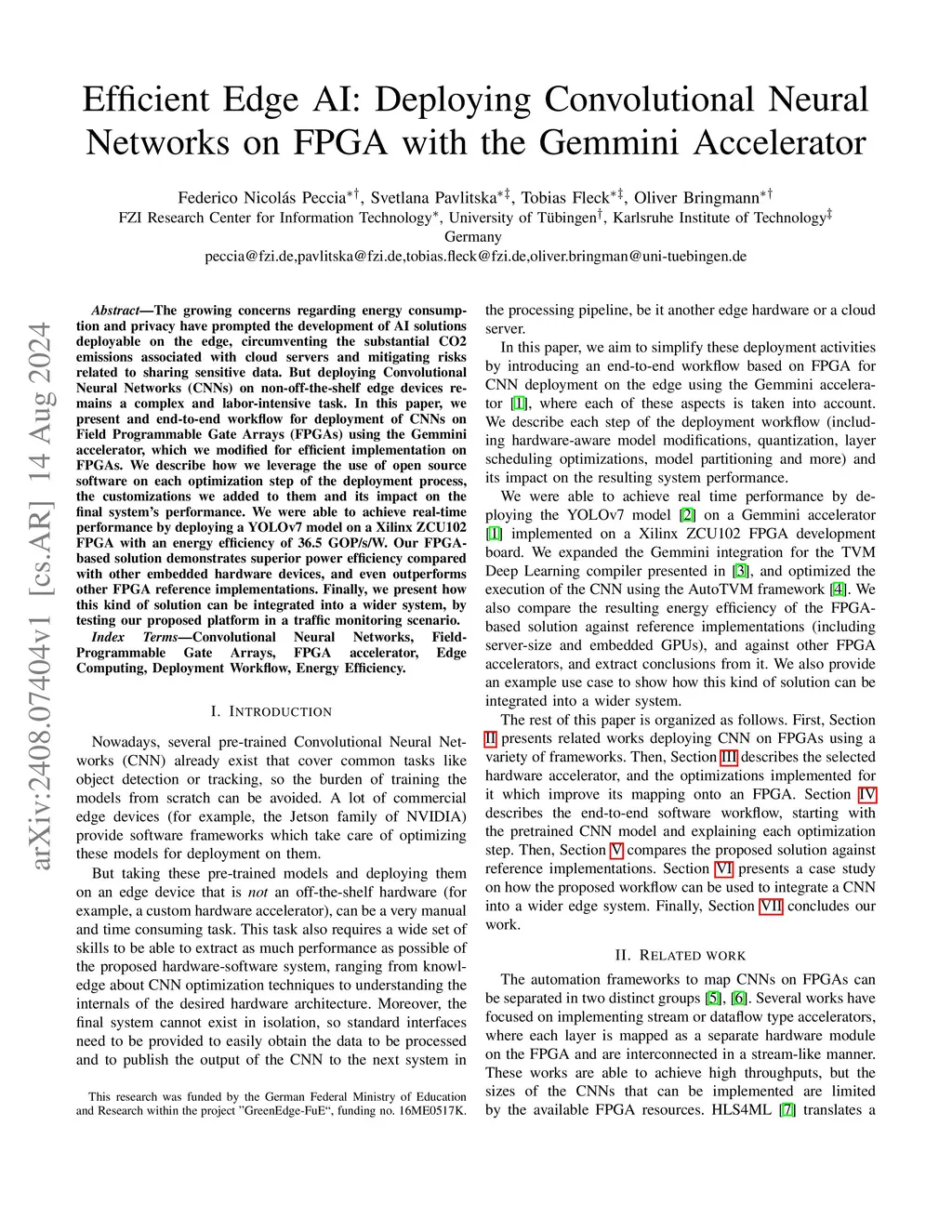 Efficient Edge AI: Deploying Convolutional Neural Networks on FPGA with