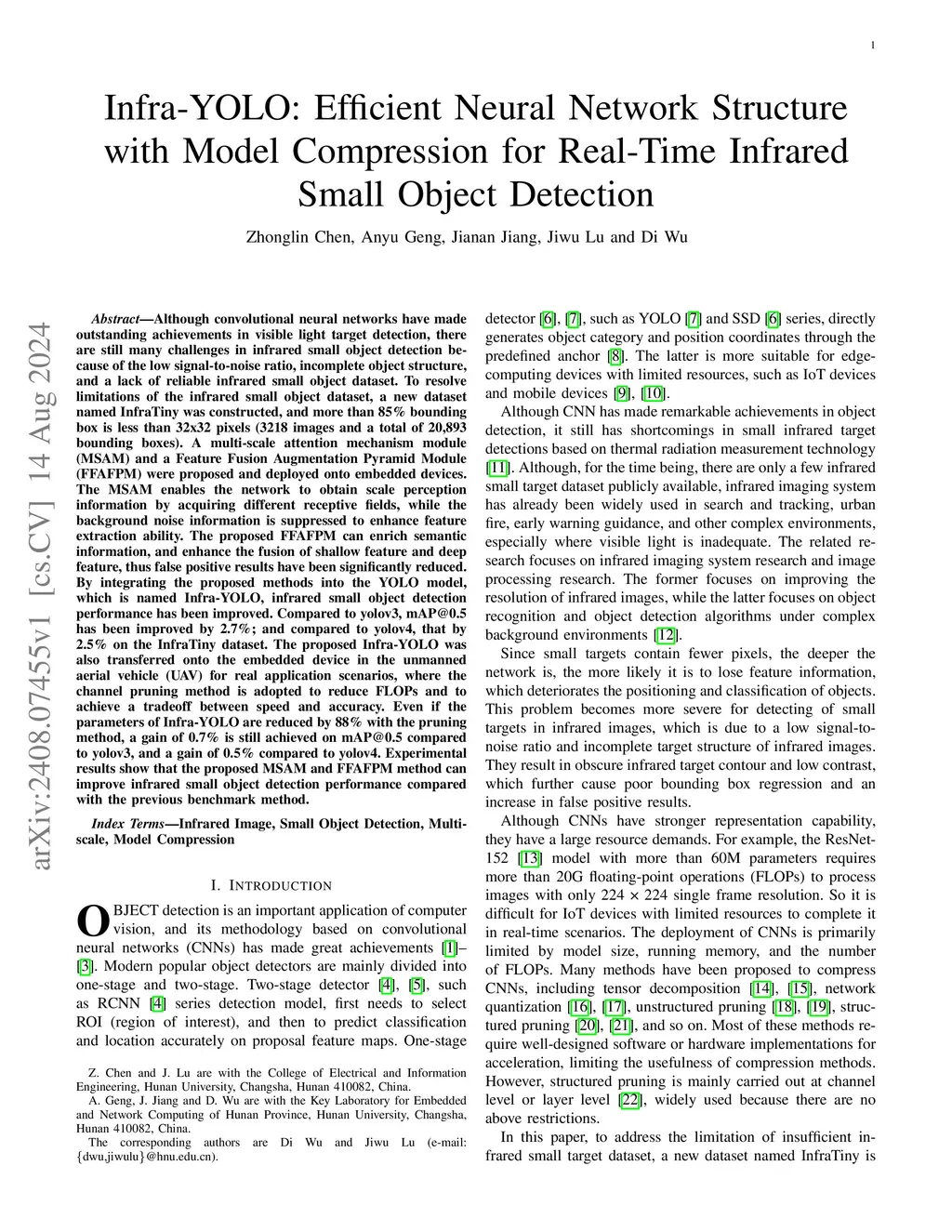 Infra-YOLO: Efficient Neural Network Structure with Model Compression