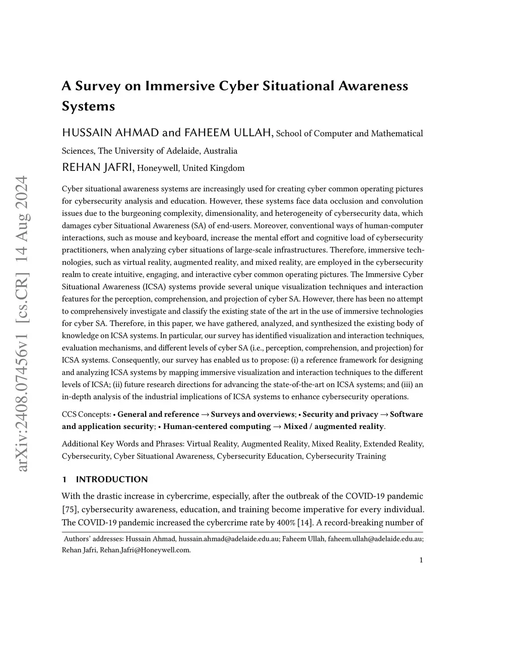 A Survey on Immersive Cyber Situational Awareness Systems