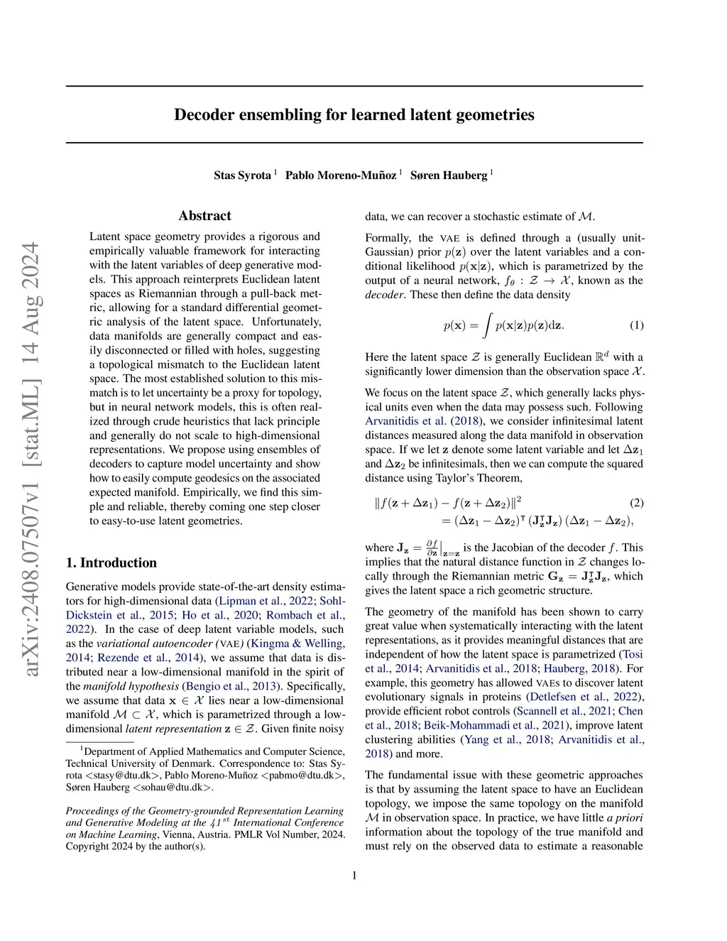 Latent space geometry provides a rigorous and empirically valuable framework for interacting with the latent variables of deep generative models. This approach reinterprets Euclidean latent spaces as Riemannian through a pull-back metric, allowing for a standard differential geometric analysis of the latent space. Unfortunately, data manifolds are generally compact and easily disconnected or filled with holes, suggesting a topological mismatch to the Euclidean latent space. The most established solution to this mismatch is to let uncertainty be a proxy for topology, but in neural network models, this is often realized through crude heuristics that lack principle and generally do not scale to high-dimensional representations. We propose using ensembles of decoders to capture model uncertainty and show how to easily compute geodesics on the associated expected manifold. Empirically, we find this simple and reliable, thereby coming one step closer to easy-to-use latent geometries.
