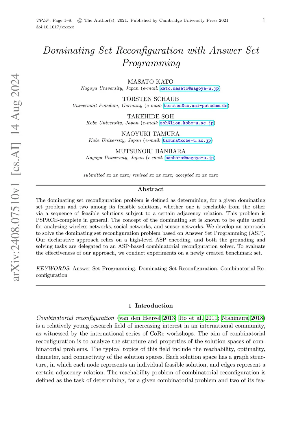 The dominating set reconfiguration problem is defined as determining, for a given dominating set problem and two among its feasible solutions, whether one is reachable from the other via a sequence of feasible solutions subject to a certain adjacency relation. This problem is PSPACE-complete in general. The concept of the dominating set is known to be quite useful for analyzing wireless networks, social networks, and sensor networks. We develop an approach to solve the dominating set reconfiguration problem based on Answer Set Programming (ASP). Our declarative approach relies on a high-level ASP encoding, and both the grounding and solving tasks are delegated to an ASP-based combinatorial reconfiguration solver. To evaluate the effectiveness of our approach, we conduct experiments on a newly created benchmark set.