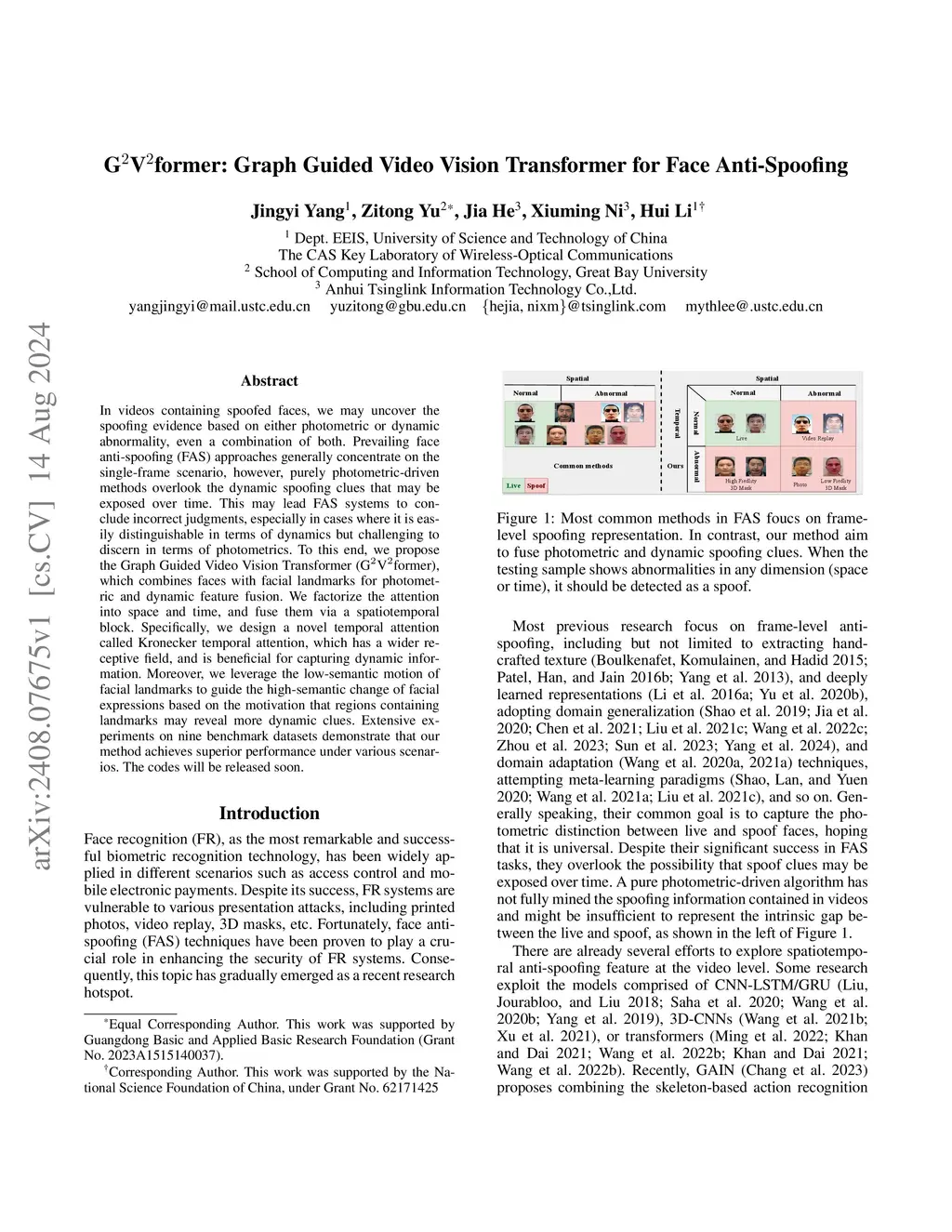In videos containing spoofed faces, we may uncover the spoofing evidence based on either photometric or dynamic abnormality, even a combination of both. Prevailing face anti-spoofing (FAS) approaches generally concentrate on the single-frame scenario, however, purely photometric-driven methods overlook the dynamic spoofing clues that may be exposed over time. This may lead FAS systems to conclude incorrect judgments, especially in cases where it is easily distinguishable in terms of dynamics but challenging to discern in terms of photometrics. To this end, we propose the Graph Guided Video Vision Transformer (GVformer), which combines faces with facial landmarks for photometric and dynamic feature fusion. We factorize the attention into space and time, and fuse them via a spatiotemporal block. Specifically, we design a novel temporal attention called Kronecker temporal attention, which has a wider receptive field, and is beneficial for capturing dynamic information. Moreover, we leverage the low-semantic motion of facial landmarks to guide the high-semantic change of facial expressions based on the motivation that regions containing landmarks may reveal more dynamic clues. Extensive experiments on nine benchmark datasets demonstrate that our method achieves superior performance under various scenarios. The codes will be released soon.