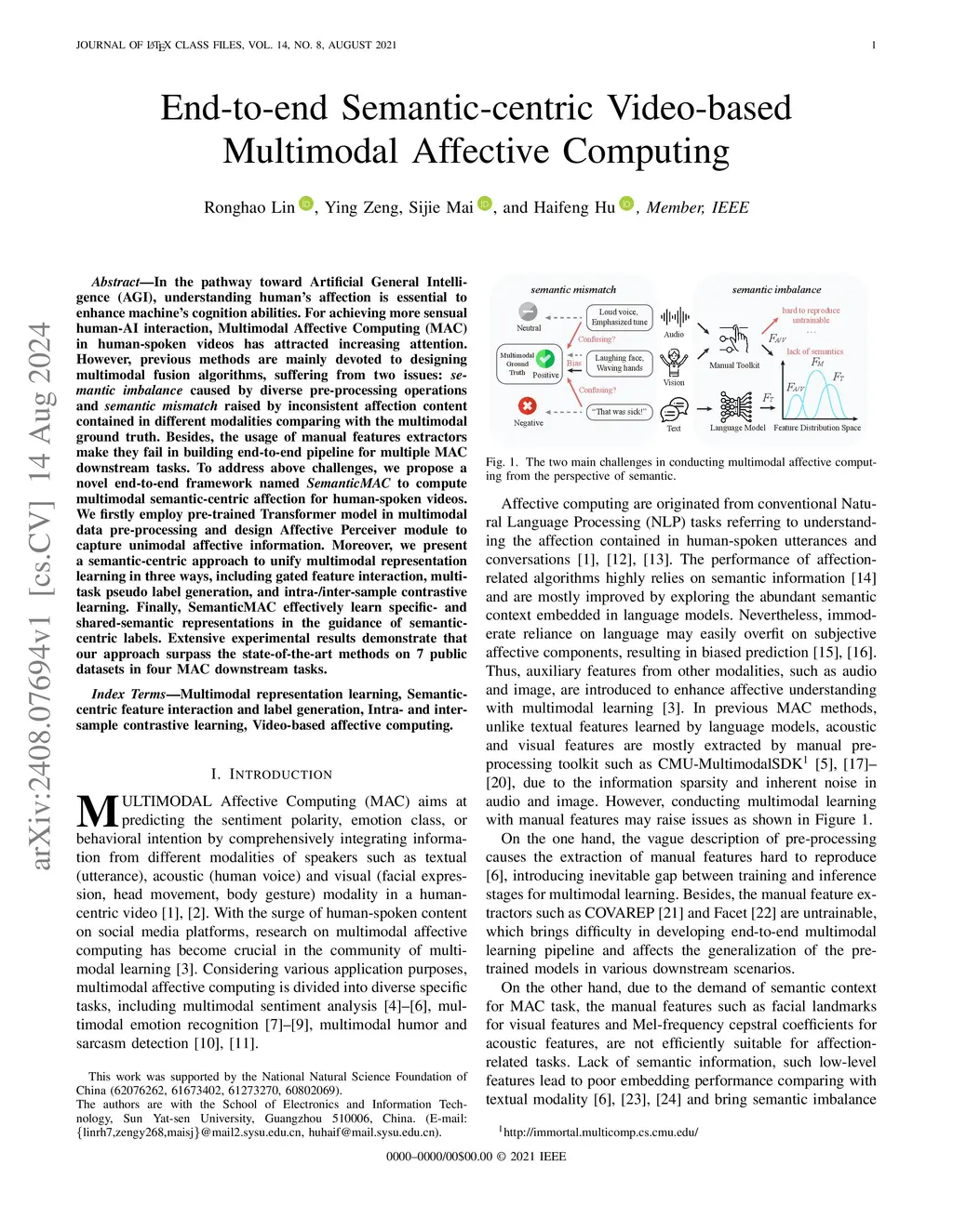 End-to-end Semantic-centric Video-based Multimodal Affective Computing