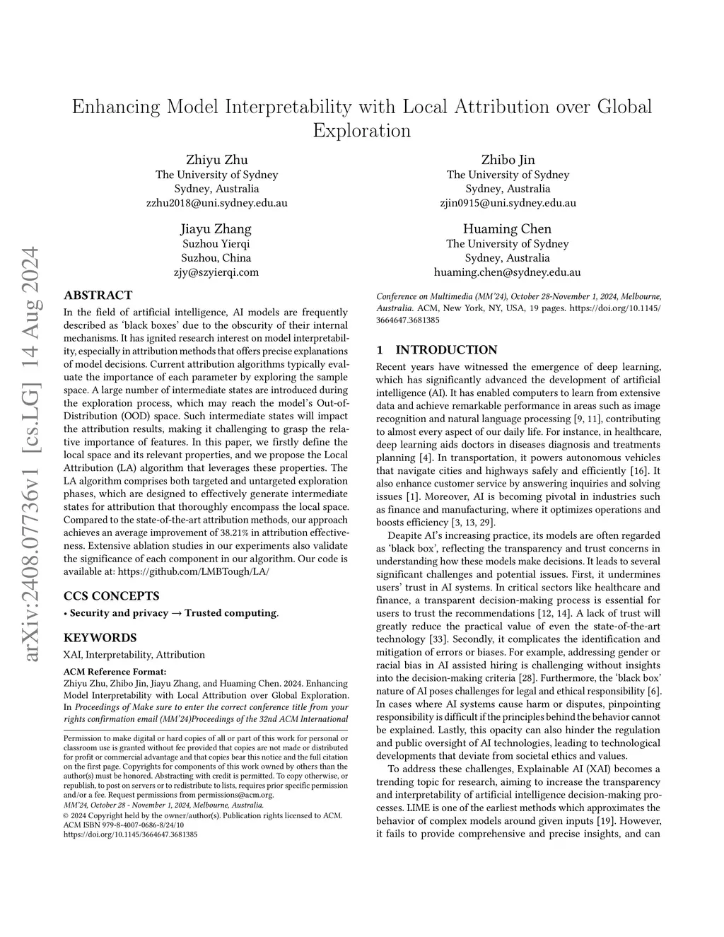 In the field of artificial intelligence, AI models are frequently described as `black boxes' due to the obscurity of their internal mechanisms. It has ignited research interest on model interpretability, especially in attribution methods that offers precise explanations of model decisions. Current attribution algorithms typically evaluate the importance of each parameter by exploring the sample space. A large number of intermediate states are introduced during the exploration process, which may reach the model's Out-of-Distribution (OOD) space. Such intermediate states will impact the attribution results, making it challenging to grasp the relative importance of features. In this paper, we firstly define the local space and its relevant properties, and we propose the Local Attribution (LA) algorithm that leverages these properties. The LA algorithm comprises both targeted and untargeted exploration phases, which are designed to effectively generate intermediate states for attribution that thoroughly encompass the local space. Compared to the state-of-the-art attribution methods, our approach achieves an average improvement of 38.21\% in attribution effectiveness. Extensive ablation studies in our experiments also validate the significance of each component in our algorithm. Our code is available at: https://github.com/LMBTough/LA/