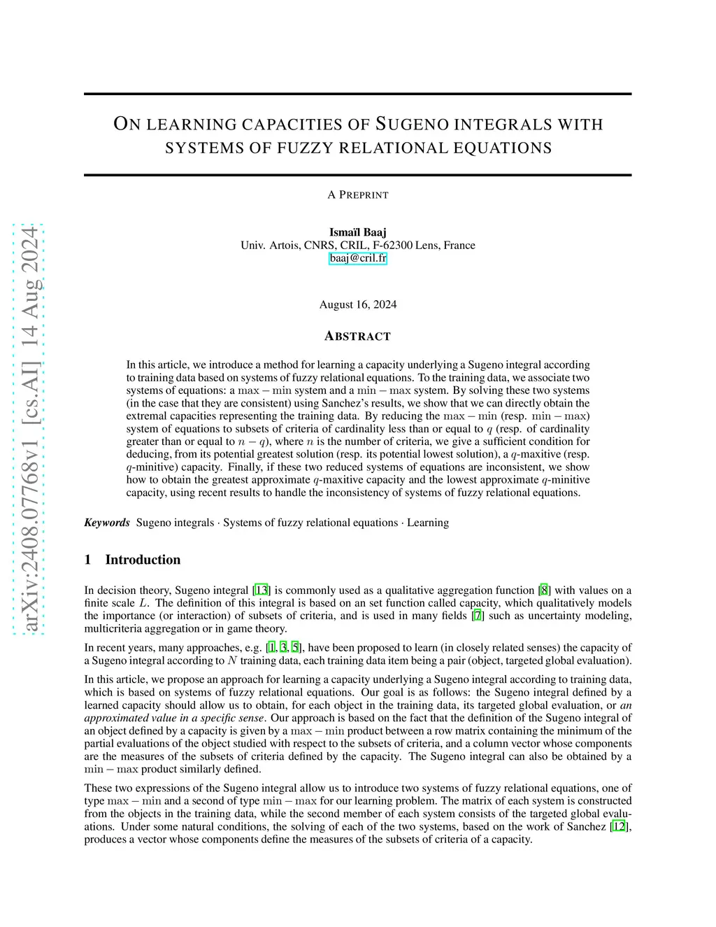 On learning capacities of Sugeno integrals with systems of fuzzy