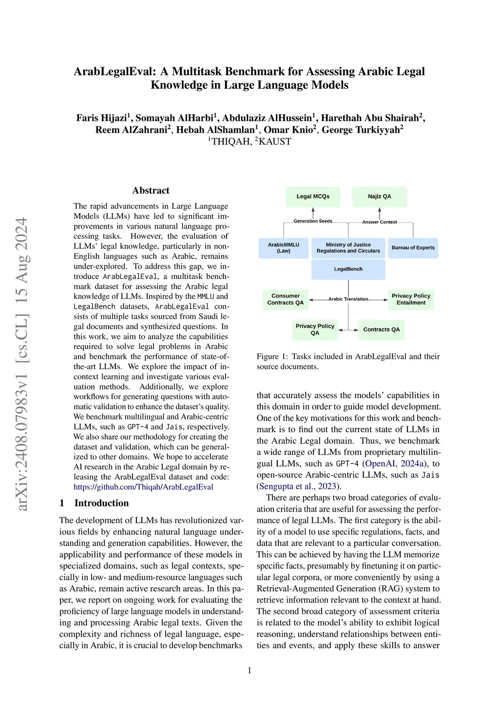 ArabLegalEval: A Multitask Benchmark for Assessing Arabic Legal