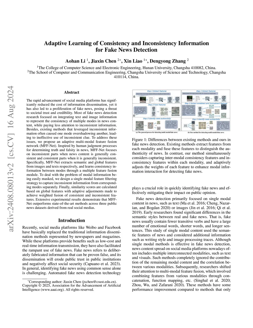 Adaptive Learning of Consistency and Inconsistency Information for Fake