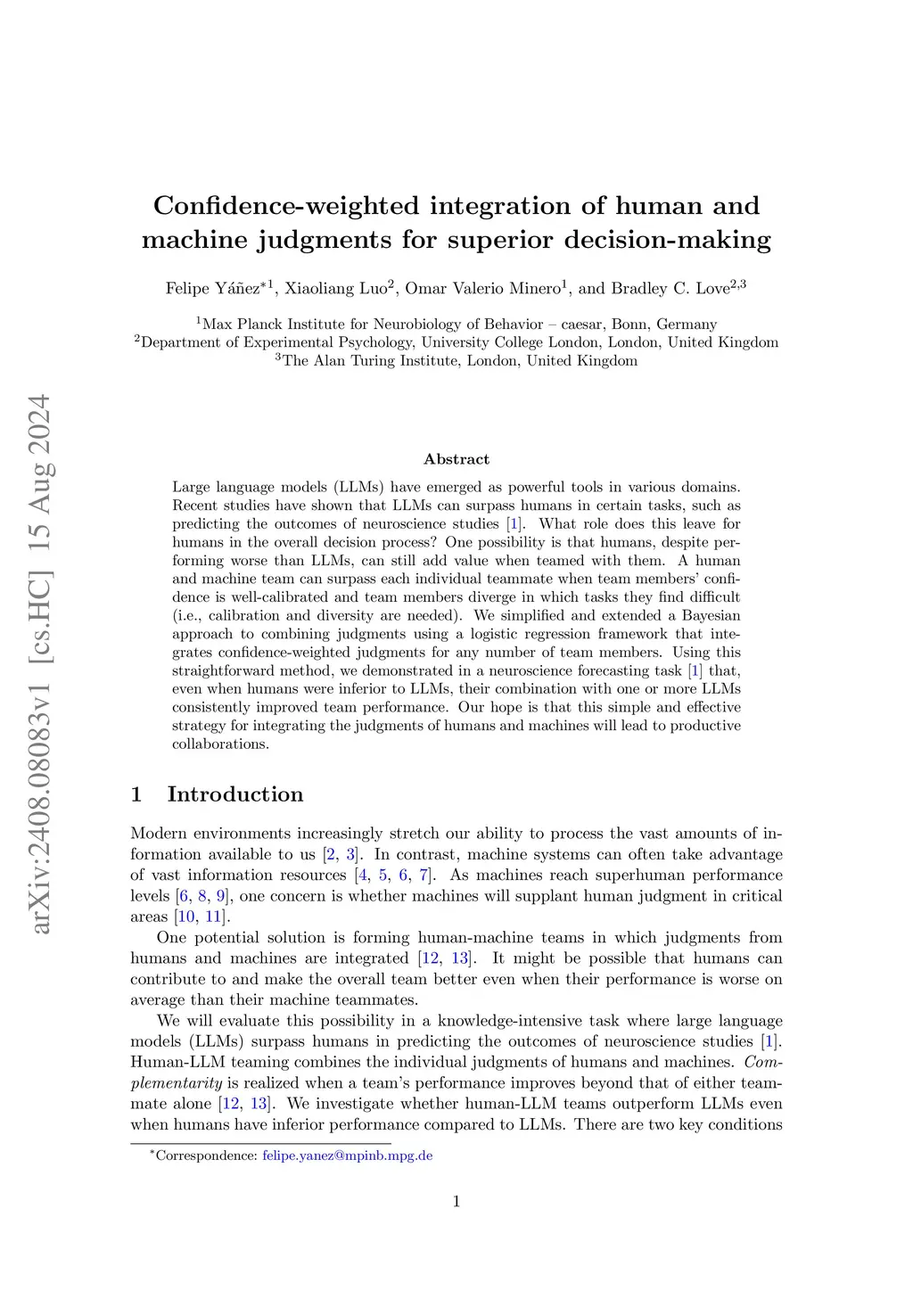 Confidence-weighted integration of human and machine judgments for superior decision-making