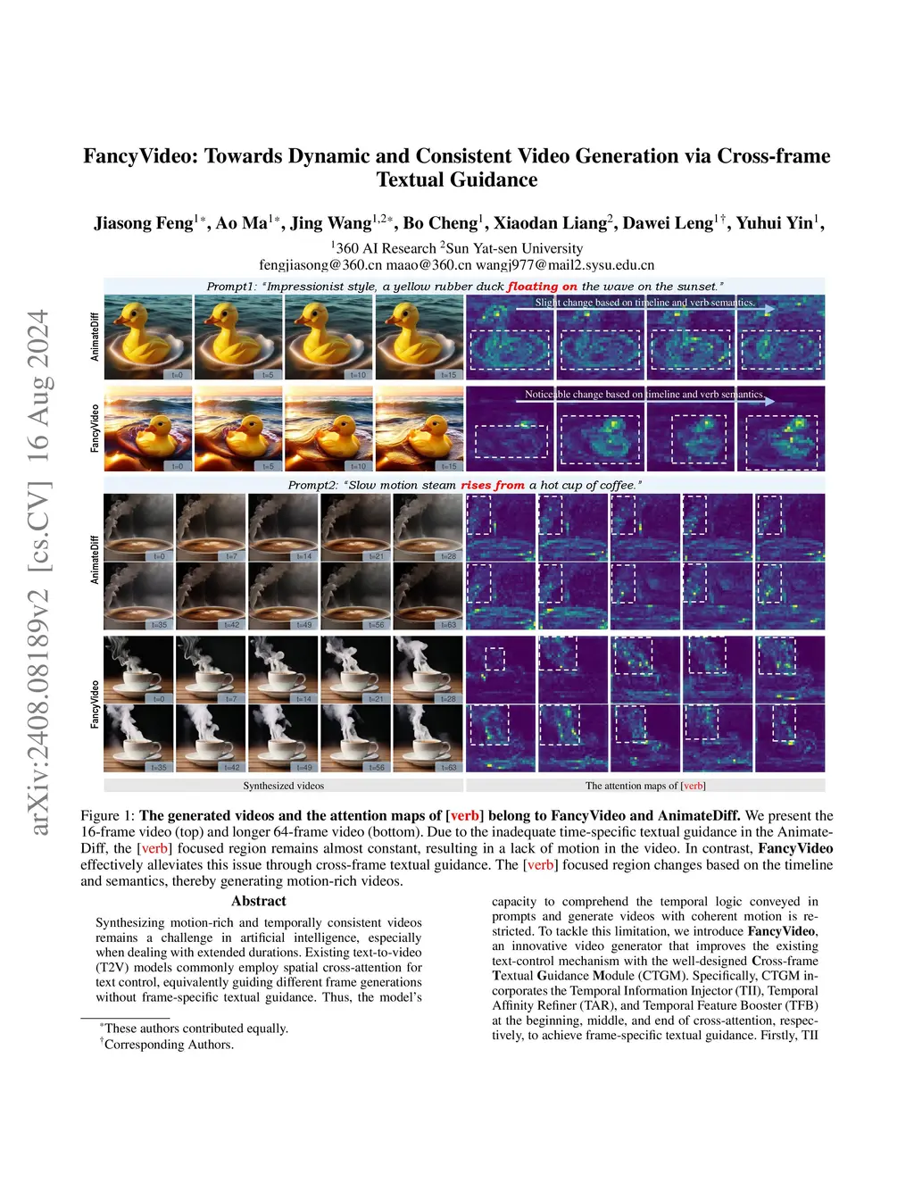 Synthesizing motion-rich and temporally consistent videos remains a challenge in artificial intelligence, especially when dealing with extended durations. Existing text-to-video (T2V) models commonly employ spatial cross-attention for text control, equivalently guiding different frame generations without frame-specific textual guidance. Thus, the model's capacity to comprehend the temporal logic conveyed in prompts and generate videos with coherent motion is restricted. To tackle this limitation, we introduce FancyVideo, an innovative video generator that improves the existing text-control mechanism with the well-designed Cross-frame Textual Guidance Module (CTGM). Specifically, CTGM incorporates the Temporal Information Injector (TII) and Temporal Affinity Refiner (TAR) at the beginning and end of cross-attention, respectively, to achieve frame-specific textual guidance. Firstly, TII injects frame-specific information from latent features into text conditions, thereby obtaining cross-frame textual conditions. Then, TAR refines the correlation matrix between cross-frame textual conditions and latent features along the time dimension. Extensive experiments comprising both quantitative and qualitative evaluations demonstrate the effectiveness of FancyVideo. Our approach achieves state-of-the-art T2V generation results on the EvalCrafter benchmark and facilitates the synthesis of dynamic and consistent videos. Note that the T2V process of FancyVideo essentially involves a text-to-image step followed by T+I2V. This means it also supports the generation of videos from user images, i.e., the image-to-video (I2V) task. A significant number of experiments have shown that its performance is also outstanding.