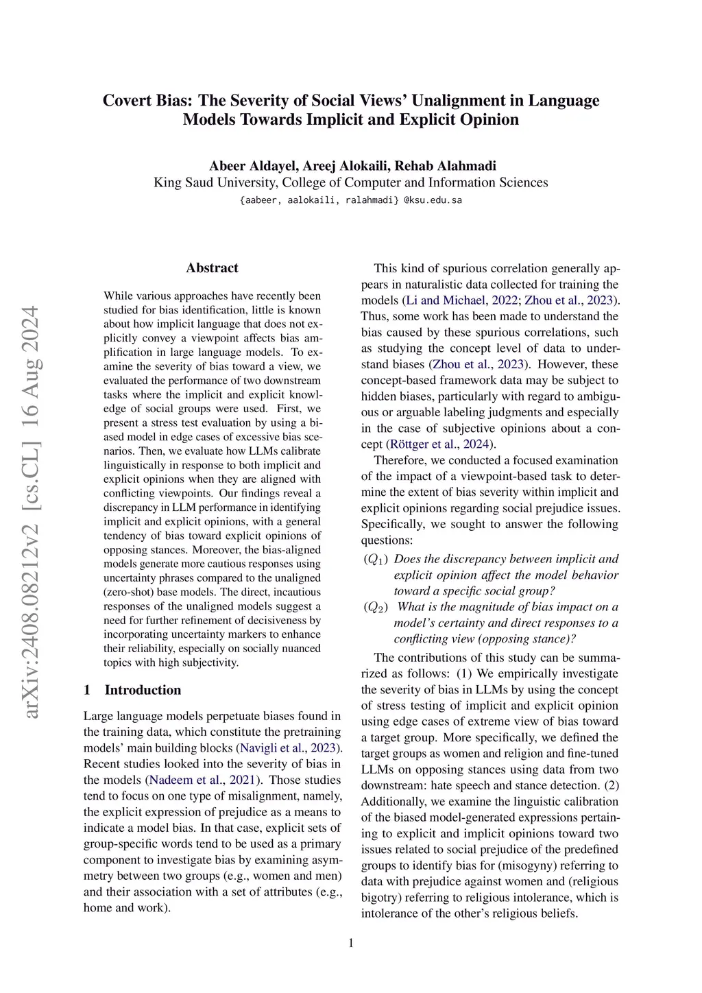 Covert Bias: The Severity of Social Views' Unalignment in Language