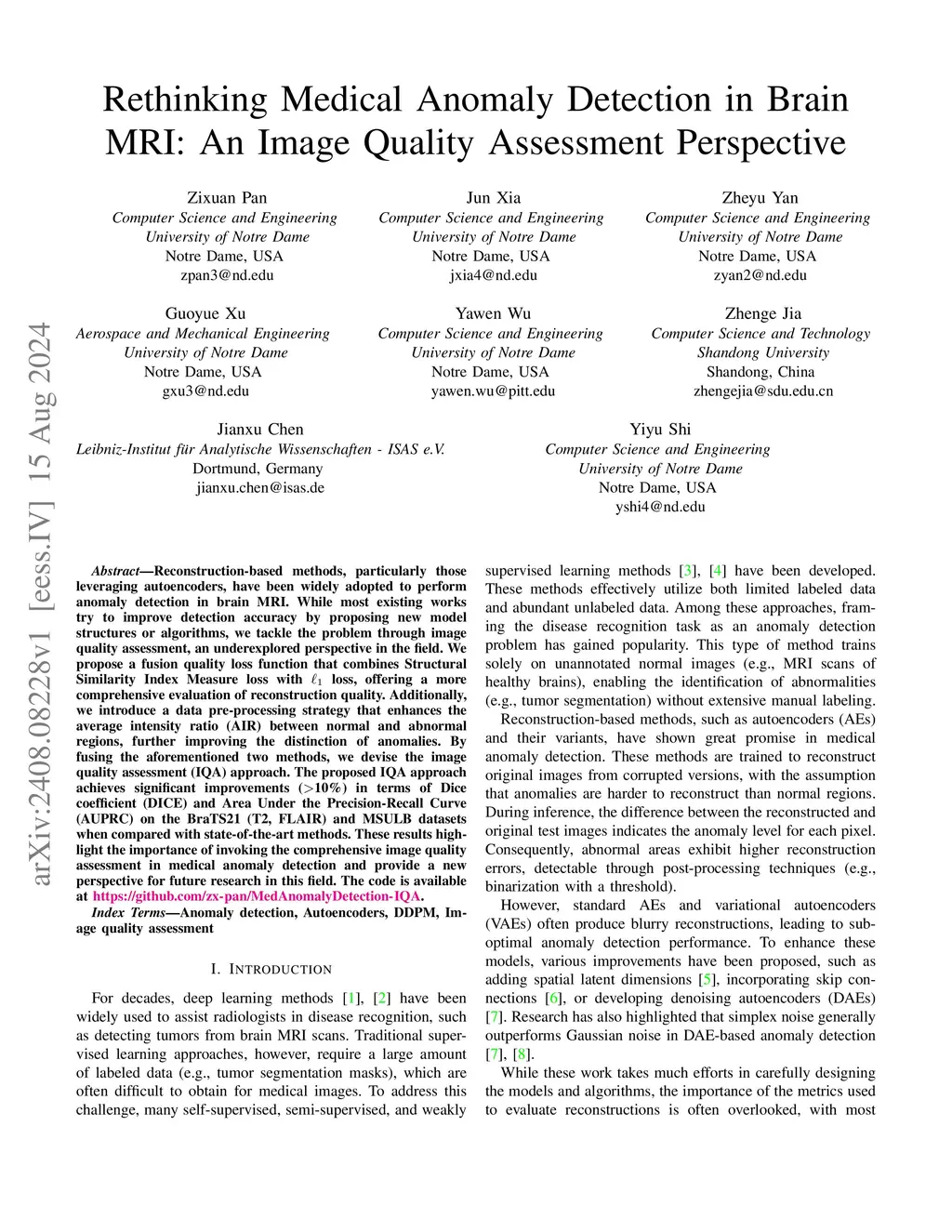 Reconstruction-based methods, particularly those leveraging autoencoders, have been widely adopted for anomaly detection task in brain MRI. Unlike most existing works try to improve the task accuracy through architectural or algorithmic innovations, we tackle this task from image quality assessment (IQA) perspective, an under-explored direction in the field. Due to the limitations of conventional metrics such as l1 in capturing the nuanced differences in reconstructed images for medical anomaly detection, we propose fusion quality, a novel metric that wisely integrates the structure-level sensitivity of Structural Similarity Index Measure (SSIM) with the pixel-level precision of l1. The metric offers a more comprehensive assessment of reconstruction quality, considering intensity (subtractive property of l1 and divisive property of SSIM), contrast, and structural similarity. Furthermore, the proposed metric makes subtle regional variations more impactful in the final assessment. Thus, considering the inherent divisive properties of SSIM, we design an average intensity ratio (AIR)-based data transformation that amplifies the divisive discrepancies between normal and abnormal regions, thereby enhancing anomaly detection. By fusing the aforementioned two components, we devise the IQA approach. Experimental results on two distinct brain MRI datasets show that our IQA approach significantly enhances medical anomaly detection performance when integrated with state-of-the-art baselines.