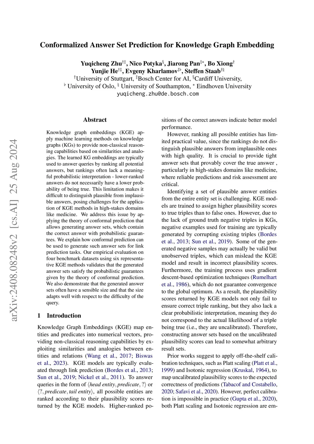 Conformalized Answer Set Prediction for Knowledge Graph Embedding