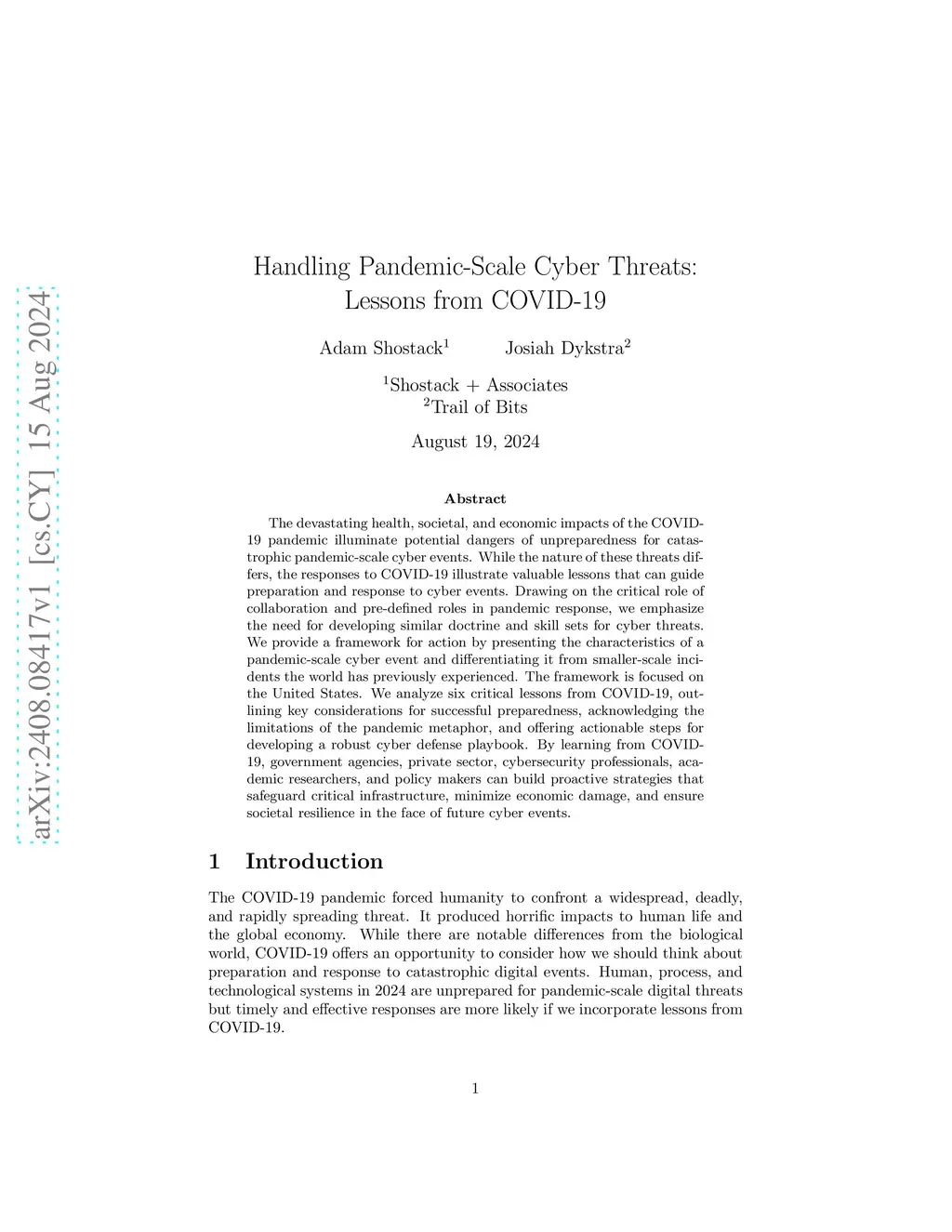 Handling Pandemic-Scale Cyber Threats: Lessons from COVID-19