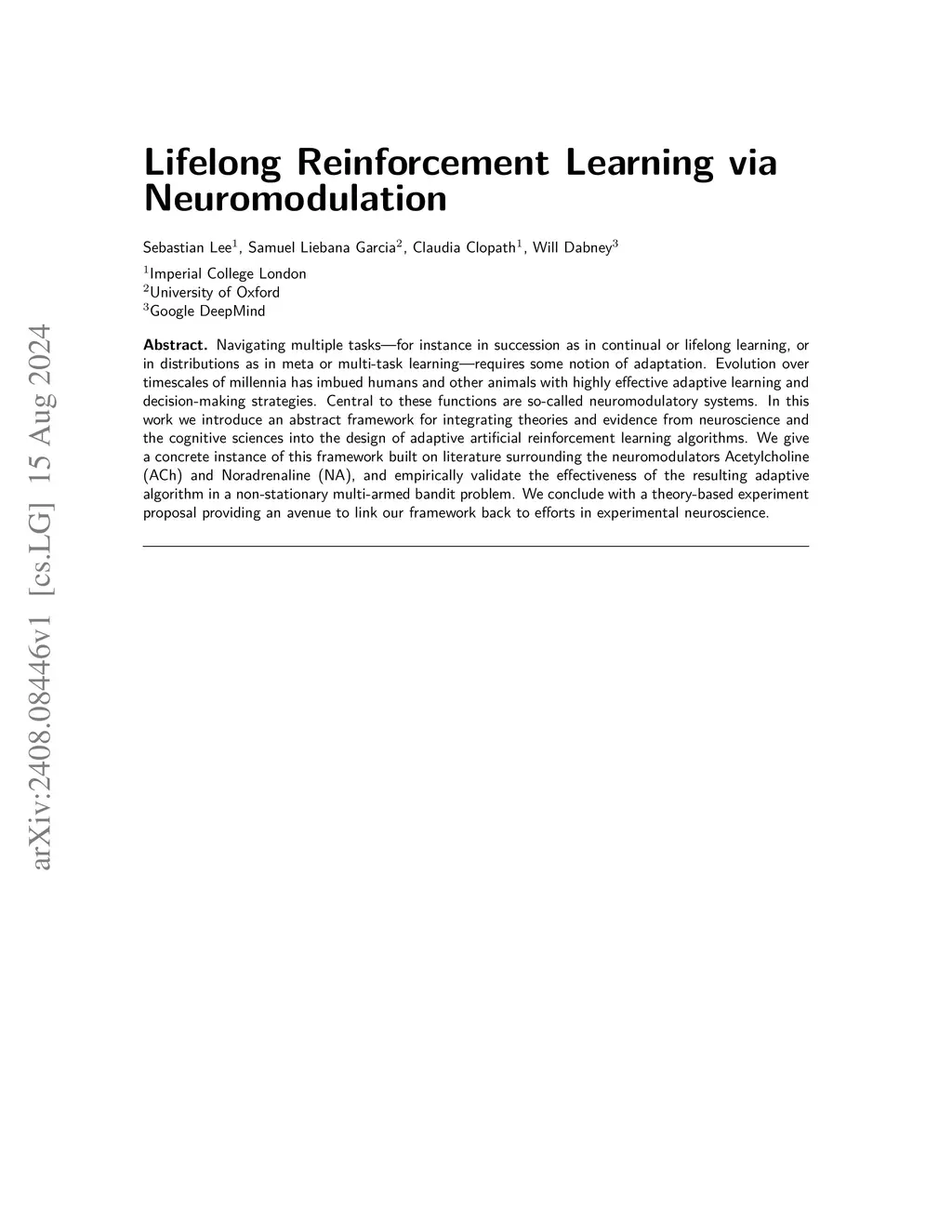 Navigating multiple tasksfor instance in succession as in continual or lifelong learning, or in distributions as in meta or multi-task learningrequires some notion of adaptation. Evolution over timescales of millennia has imbued humans and other animals with highly effective adaptive learning and decision-making strategies. Central to these functions are so-called neuromodulatory systems. In this work we introduce an abstract framework for integrating theories and evidence from neuroscience and the cognitive sciences into the design of adaptive artificial reinforcement learning algorithms. We give a concrete instance of this framework built on literature surrounding the neuromodulators Acetylcholine (ACh) and Noradrenaline (NA), and empirically validate the effectiveness of the resulting adaptive algorithm in a non-stationary multi-armed bandit problem. We conclude with a theory-based experiment proposal providing an avenue to link our framework back to efforts in experimental neuroscience.