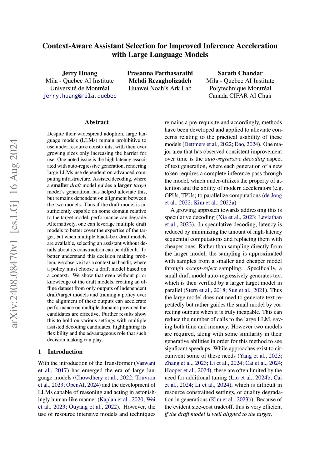 Context-Aware Assistant Selection for Improved Inference Acceleration
