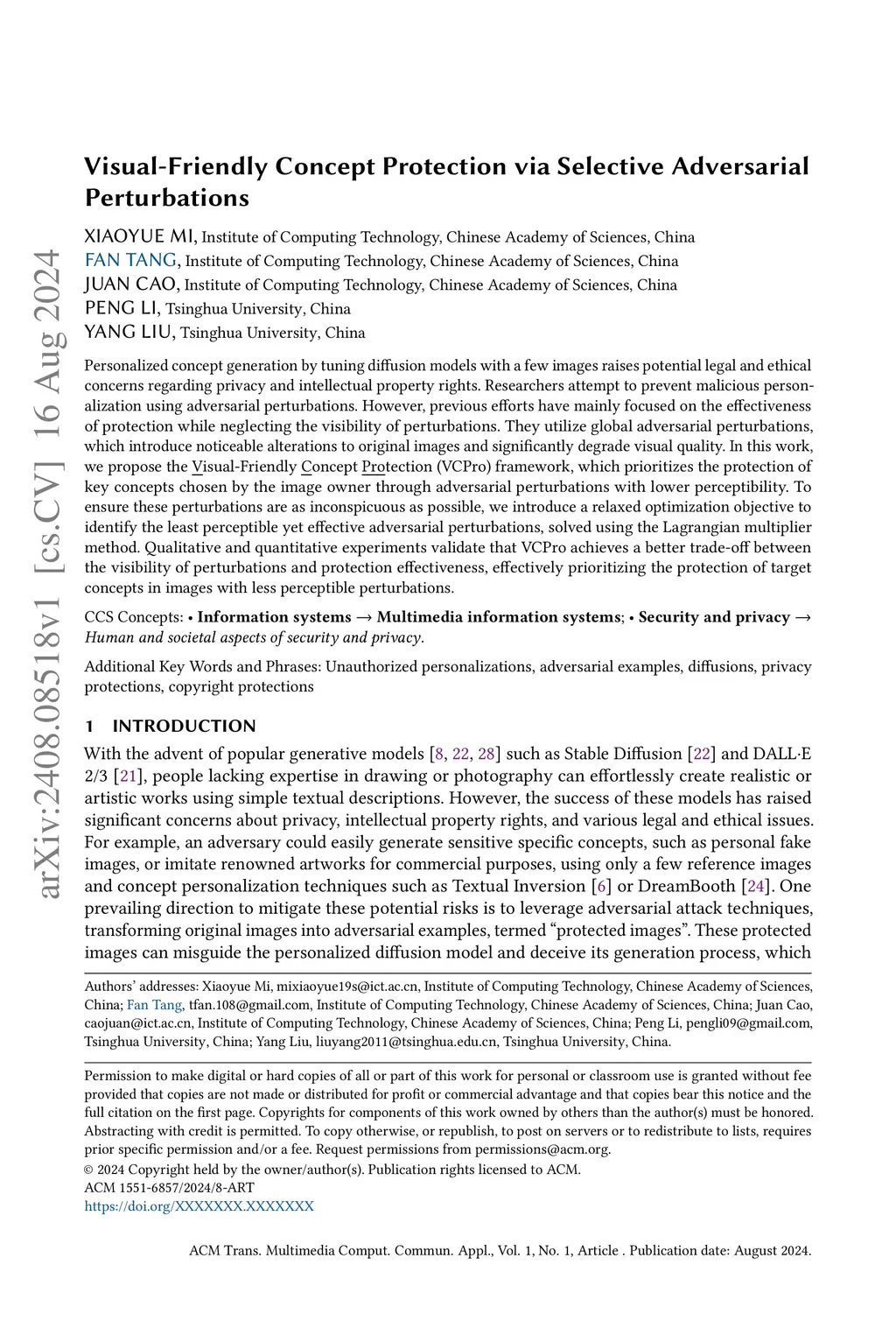 Visual-Friendly Concept Protection via Selective Adversarial Perturbations
