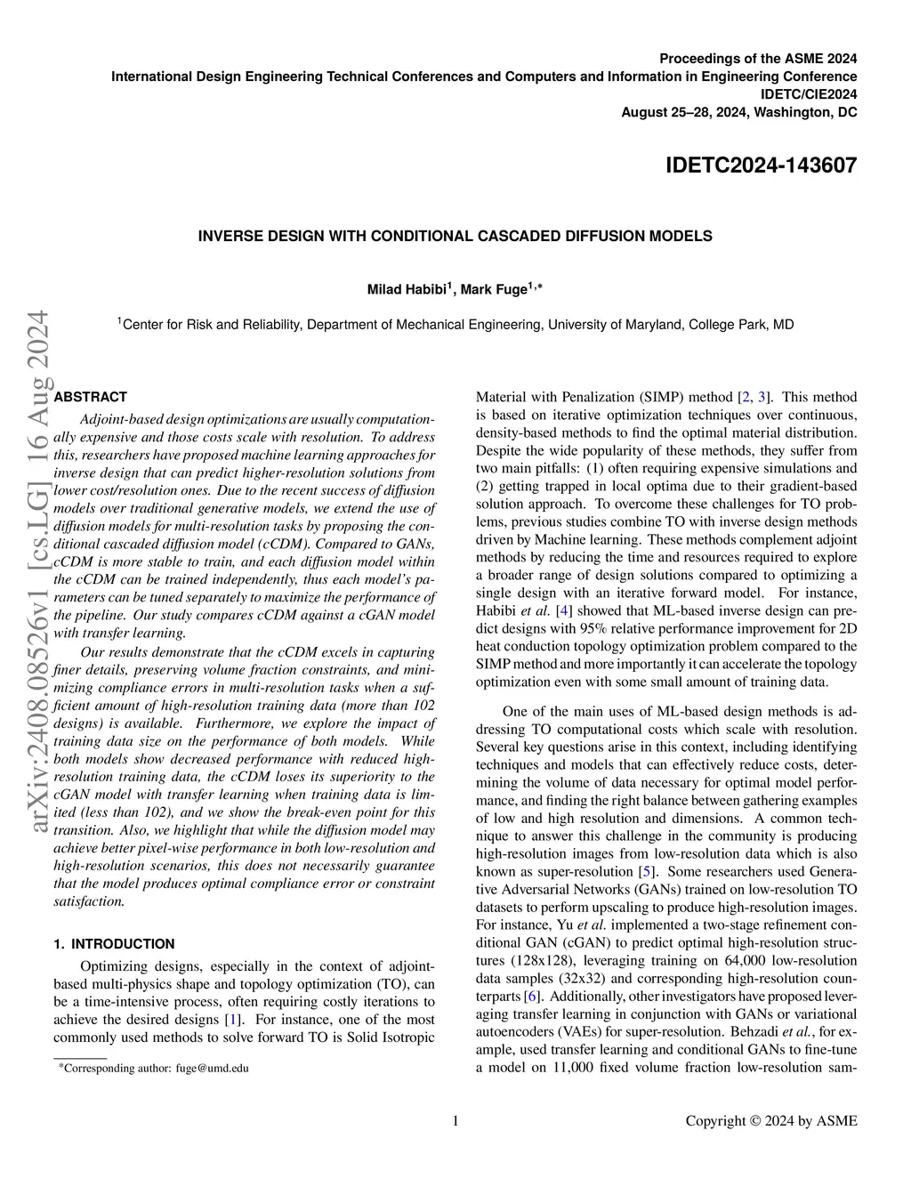 Adjoint-based design optimizations are usually computationally expensive and those costs scale with resolution. To address this, researchers have proposed machine learning approaches for inverse design that can predict higher-resolution solutions from lower cost/resolution ones. Due to the recent success of diffusion models over traditional generative models, we extend the use of diffusion models for multi-resolution tasks by proposing the conditional cascaded diffusion model (cCDM). Compared to GANs, cCDM is more stable to train, and each diffusion model within the cCDM can be trained independently, thus each model's parameters can be tuned separately to maximize the performance of the pipeline. Our study compares cCDM against a cGAN model with transfer learning. Our results demonstrate that the cCDM excels in capturing finer details, preserving volume fraction constraints, and minimizing compliance errors in multi-resolution tasks when a sufficient amount of high-resolution training data (more than 102 designs) is available. Furthermore, we explore the impact of training data size on the performance of both models. While both models show decreased performance with reduced high-resolution training data, the cCDM loses its superiority to the cGAN model with transfer learning when training data is limited (less than 102), and we show the break-even point for this transition. Also, we highlight that while the diffusion model may achieve better pixel-wise performance in both low-resolution and high-resolution scenarios, this does not necessarily guarantee that the model produces optimal compliance error or constraint satisfaction.