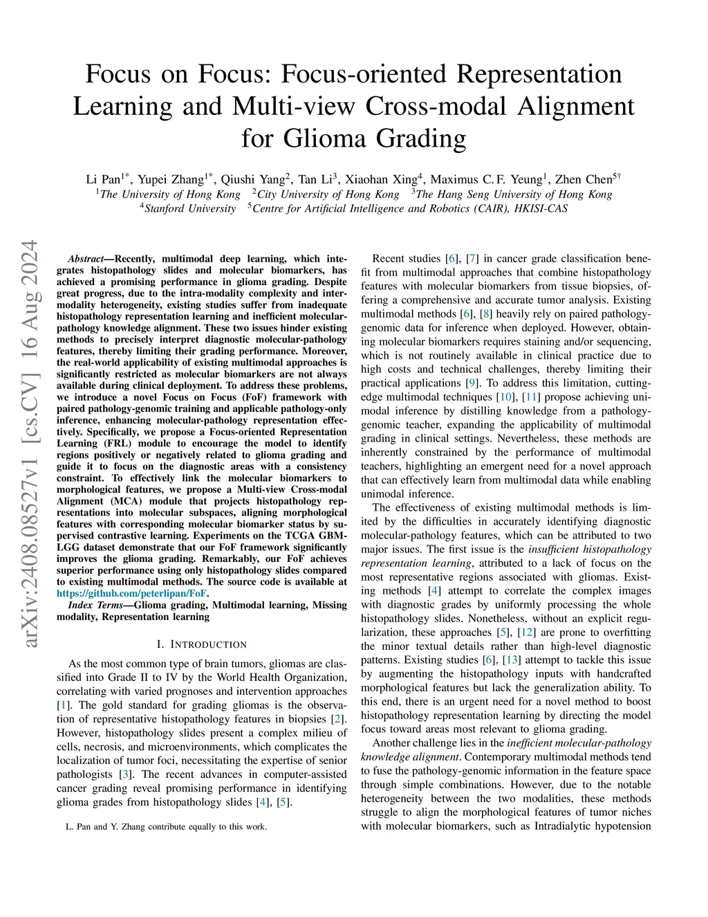 Recently, multimodal deep learning, which integrates histopathology slides and molecular biomarkers, has achieved a promising performance in glioma grading. Despite great progress, due to the intra-modality complexity and inter-modality heterogeneity, existing studies suffer from inadequate histopathology representation learning and inefficient molecular-pathology knowledge alignment. These two issues hinder existing methods to precisely interpret diagnostic molecular-pathology features, thereby limiting their grading performance. Moreover, the real-world applicability of existing multimodal approaches is significantly restricted as molecular biomarkers are not always available during clinical deployment. To address these problems, we introduce a novel Focus on Focus (FoF) framework with paired pathology-genomic training and applicable pathology-only inference, enhancing molecular-pathology representation effectively. Specifically, we propose a Focus-oriented Representation Learning (FRL) module to encourage the model to identify regions positively or negatively related to glioma grading and guide it to focus on the diagnostic areas with a consistency constraint. To effectively link the molecular biomarkers to morphological features, we propose a Multi-view Cross-modal Alignment (MCA) module that projects histopathology representations into molecular subspaces, aligning morphological features with corresponding molecular biomarker status by supervised contrastive learning. Experiments on the TCGA GBM-LGG dataset demonstrate that our FoF framework significantly improves the glioma grading. Remarkably, our FoF achieves superior performance using only histopathology slides compared to existing multimodal methods. The source code is available at https://github.com/peterlipan/FoF.