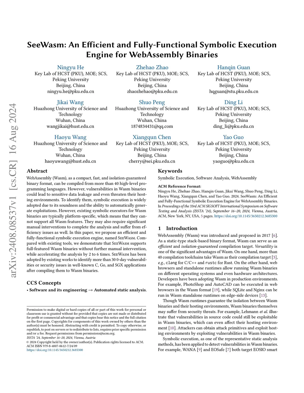 SeeWasm: An Efficient and Fully-Functional Symbolic Execution Engine for