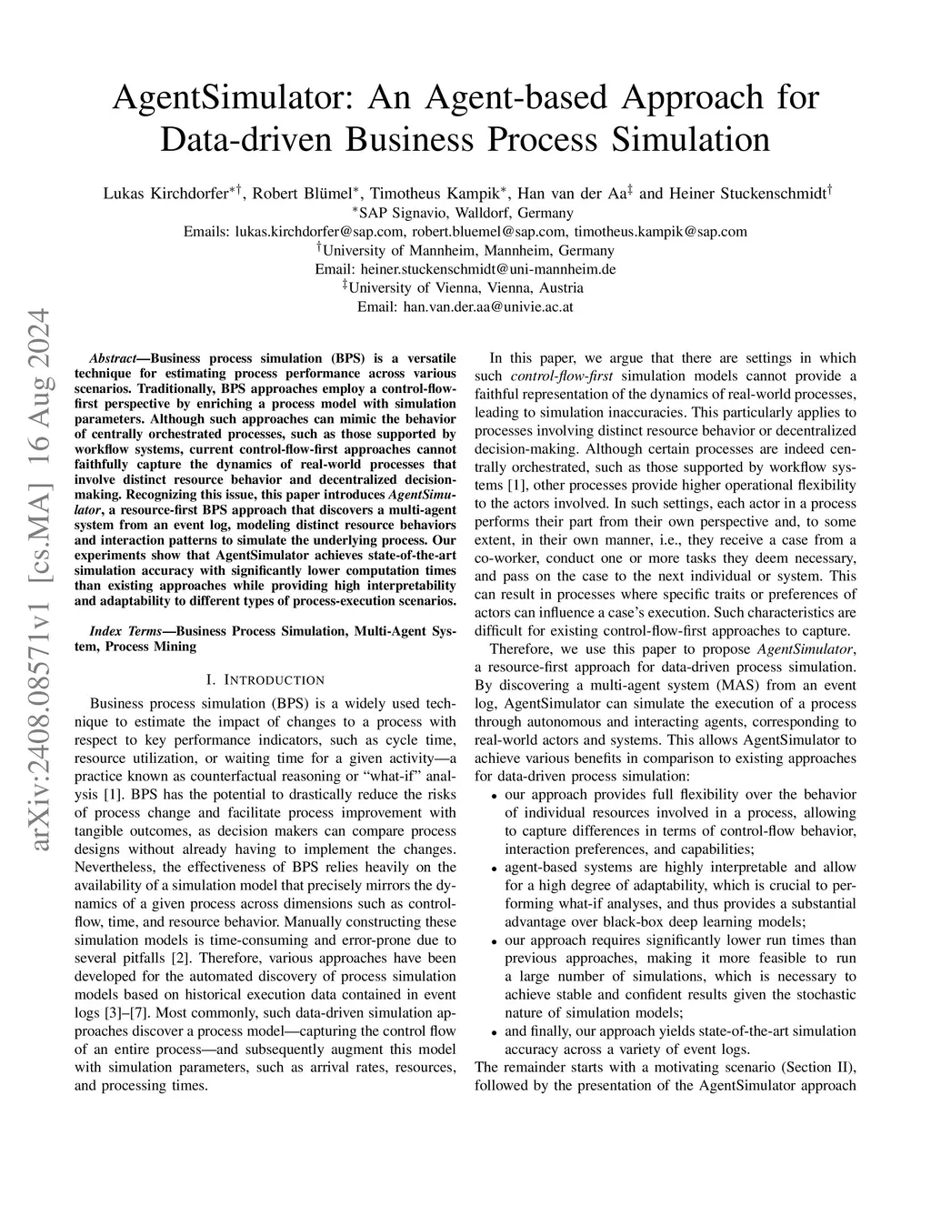 AgentSimulator: An Agent-based Approach for Data-driven Business Process
