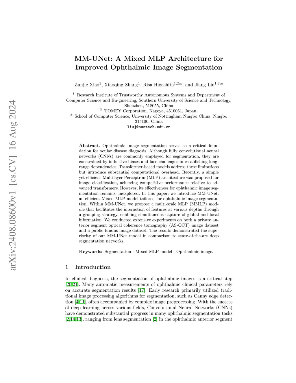 MM-UNet: A Mixed MLP Architecture for Improved Ophthalmic Image
