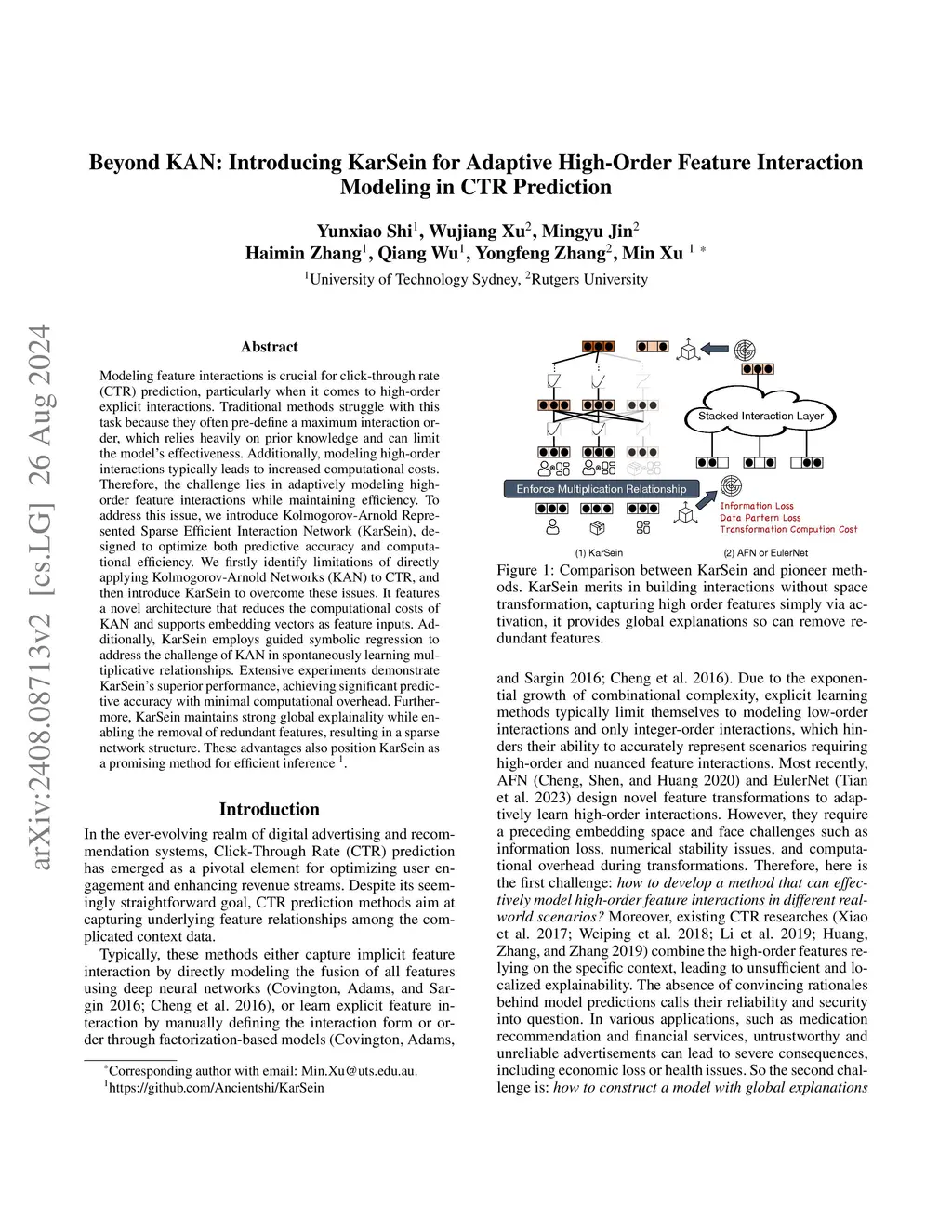 Beyond KAN: Introducing KarSein for Adaptive High-Order Feature Interaction Modeling in CTR Prediction