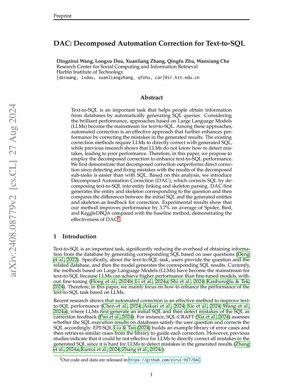 DAC: Decomposed Automation Correction for Text-to-SQL