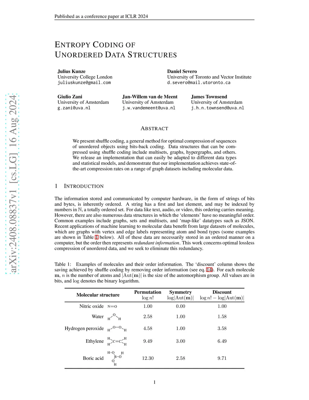 We present shuffle coding, a general method for optimal compression of sequences of unordered objects using bits-back coding. Data structures that can be compressed using shuffle coding include multisets, graphs, hypergraphs, and others. We release an implementation that can easily be adapted to different data types and statistical models, and demonstrate that our implementation achieves state-of-the-art compression rates on a range of graph datasets including molecular data.