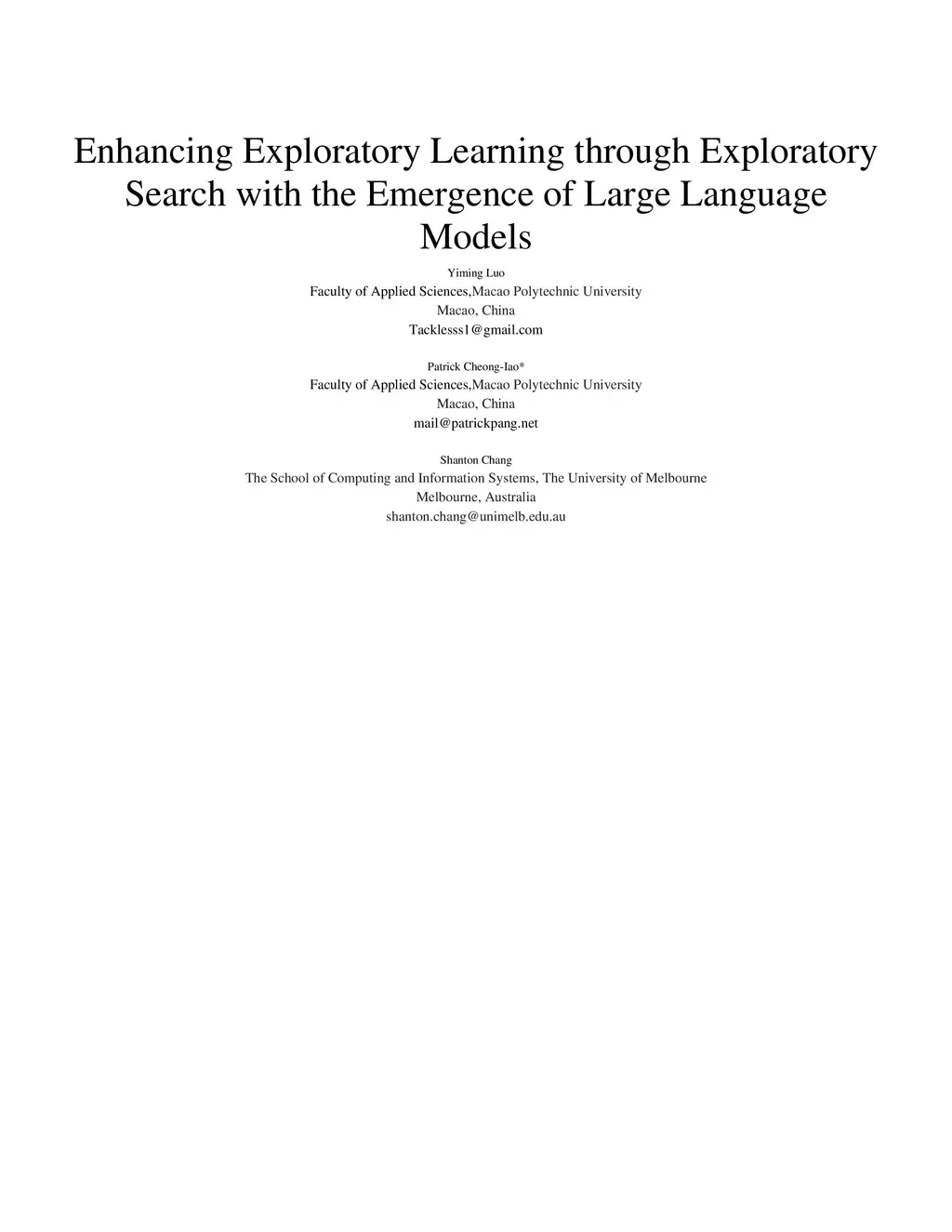 Enhancing Exploratory Learning through Exploratory Search with the Emergence of Large Language Models