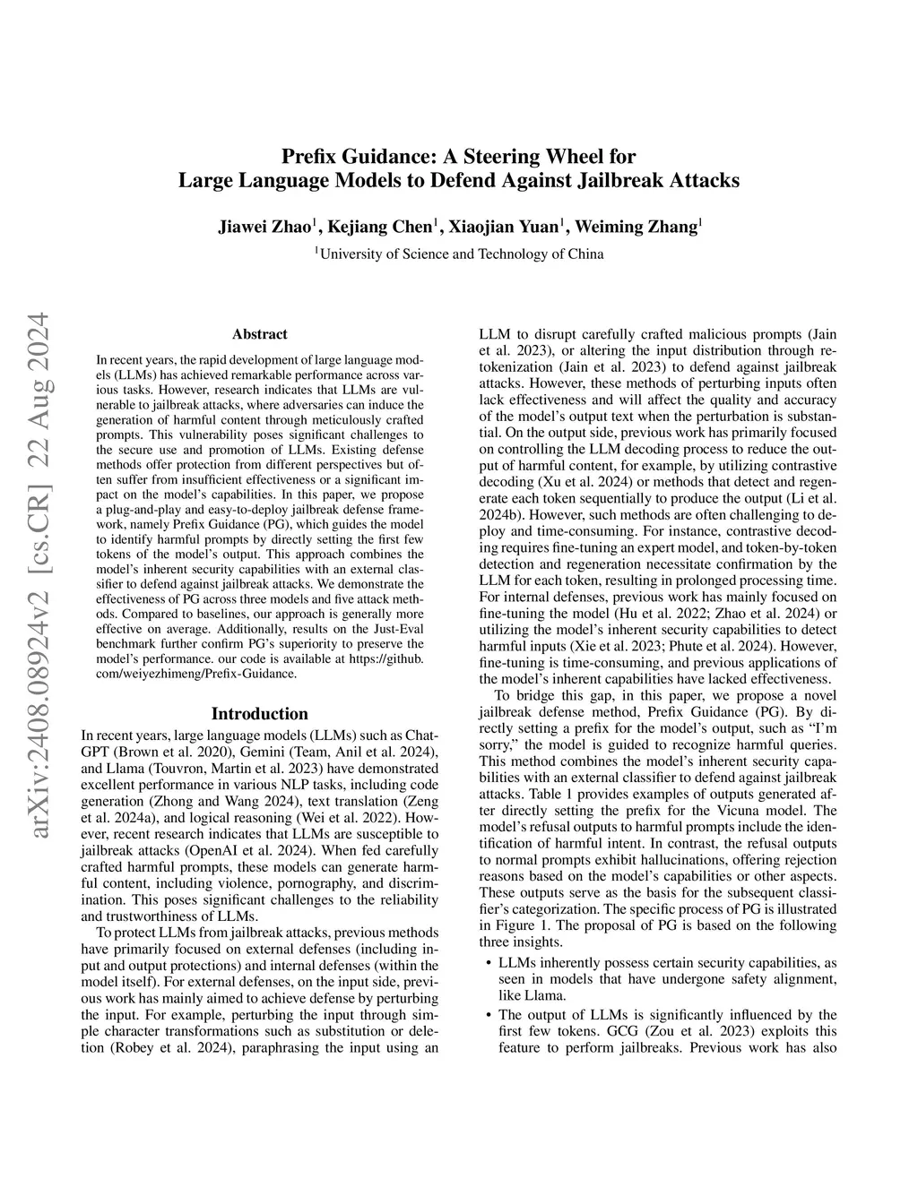 Prefix Guidance: A Steering Wheel for Large Language Models to Defend
