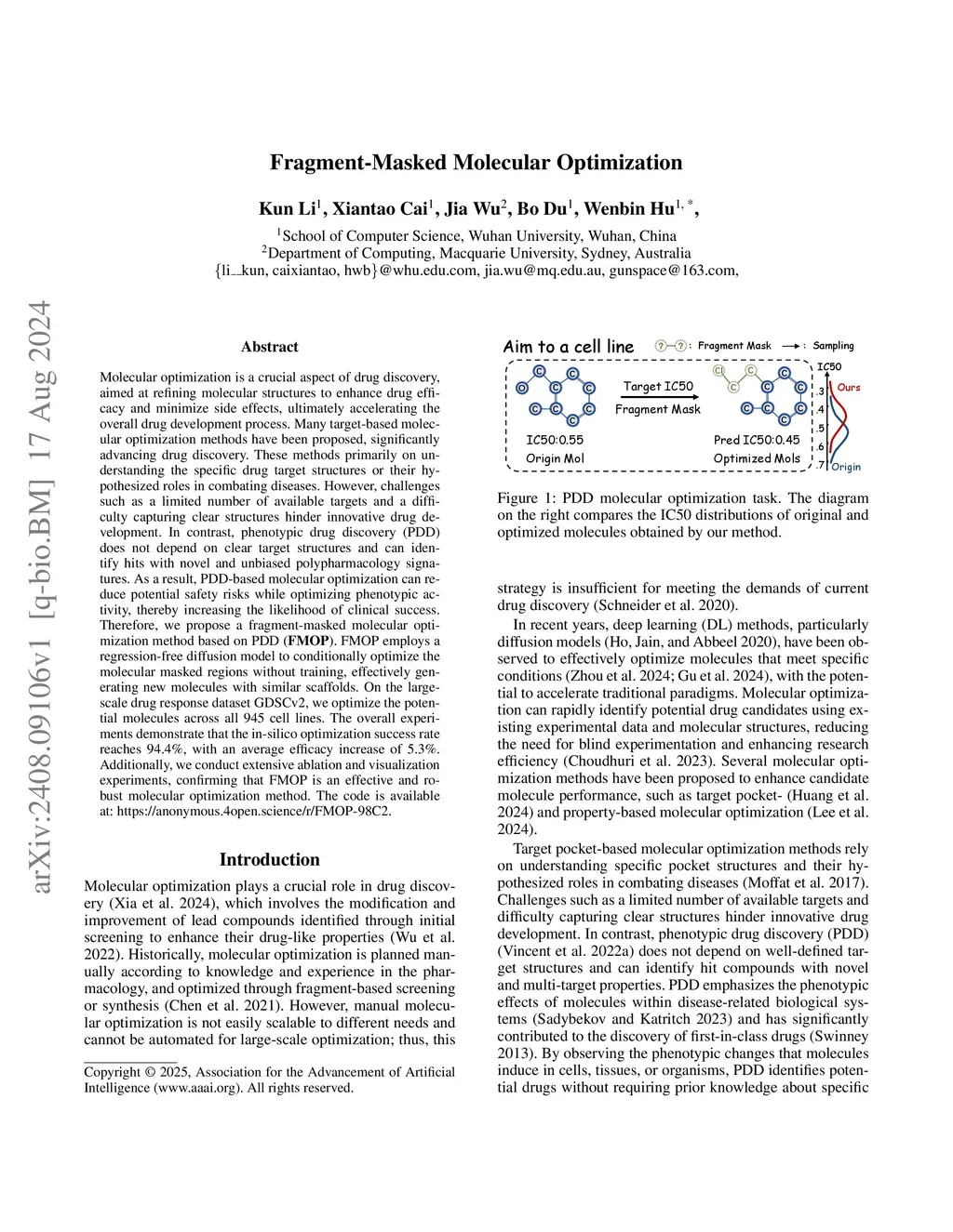 Molecular optimization is a crucial aspect of drug discovery, aimed at refining molecular structures to enhance drug efficacy and minimize side effects, ultimately accelerating the overall drug development process. Many molecular optimization methods have been proposed, significantly advancing drug discovery. These methods primarily on understanding the specific drug target structures or their hypothesized roles in combating diseases. However, challenges such as a limited number of available targets and a difficulty capturing clear structures hinder innovative drug development. In contrast, phenotypic drug discovery (PDD) does not depend on clear target structures and can identify hits with novel and unbiased polypharmacology signatures. As a result, PDD-based molecular optimization can reduce potential safety risks while optimizing phenotypic activity, thereby increasing the likelihood of clinical success. Therefore, we propose a fragment-masked molecular optimization method based on PDD (FMOP). FMOP employs a regression-free diffusion model to conditionally optimize the molecular masked regions, effectively generating new molecules with similar scaffolds. On the large-scale drug response dataset GDSCv2, we optimize the potential molecules across all 985 cell lines. The overall experiments demonstrate that the in-silico optimization success rate reaches 95.4\%, with an average efficacy increase of 7.5\%. Additionally, we conduct extensive ablation and visualization experiments, confirming that FMOP is an effective and robust molecular optimization method. The code is available at:this https URL.
