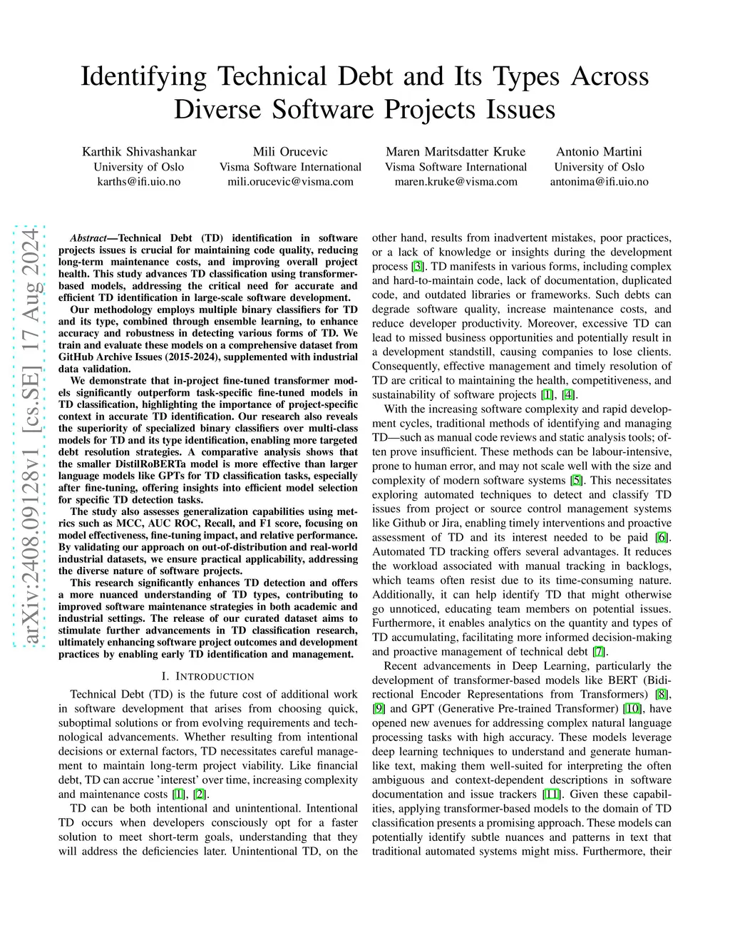 Identifying Technical Debt and Its Types Across Diverse Software