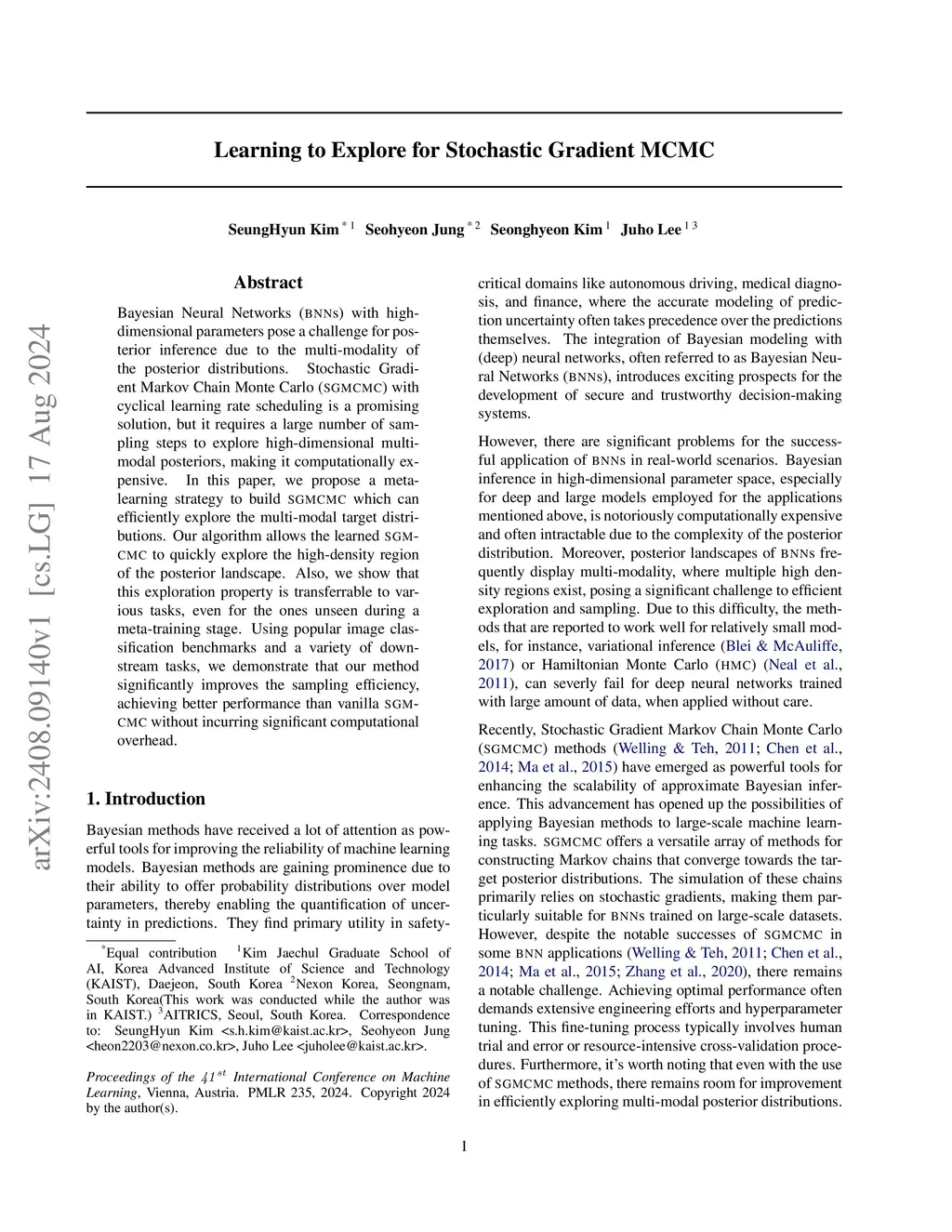 Bayesian Neural Networks(BNNs) with high-dimensional parameters pose a challenge for posterior inference due to the multi-modality of the posterior distributions. Stochastic Gradient MCMC(SGMCMC) with cyclical learning rate scheduling is a promising solution, but it requires a large number of sampling steps to explore high-dimensional multi-modal posteriors, making it computationally expensive. In this paper, we propose a meta-learning strategy to build \gls{sgmcmc} which can efficiently explore the multi-modal target distributions. Our algorithm allows the learned SGMCMC to quickly explore the high-density region of the posterior landscape. Also, we show that this exploration property is transferrable to various tasks, even for the ones unseen during a meta-training stage. Using popular image classification benchmarks and a variety of downstream tasks, we demonstrate that our method significantly improves the sampling efficiency, achieving better performance than vanilla \gls{sgmcmc} without incurring significant computational overhead.
