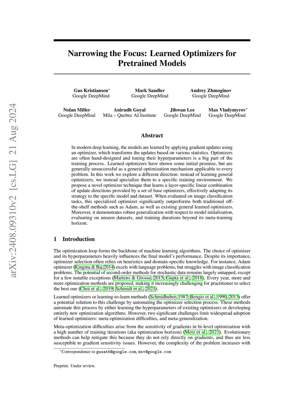 Narrowing the Focus: Learned Optimizers for Pretrained Models