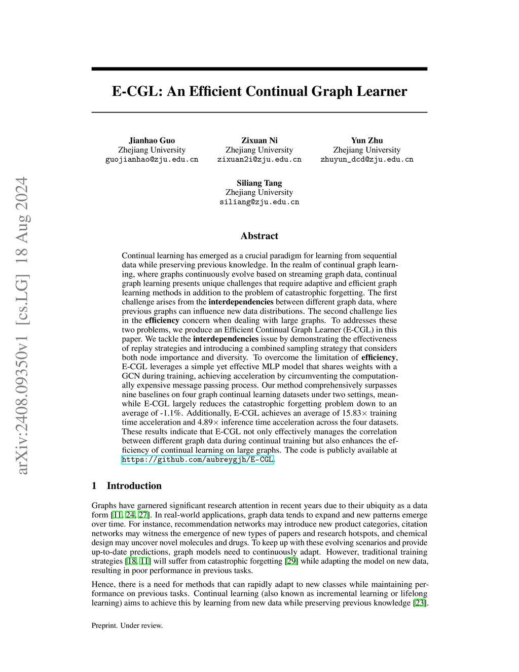 E-CGL: An Efficient Continual Graph Learner