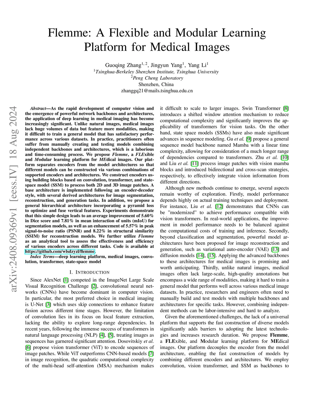 As the rapid development of computer vision and the emergence of powerful network backbones and architectures, the application of deep learning in medical imaging has become increasingly significant. Unlike natural images, medical images lack huge volumes of data but feature more modalities, making it difficult to train a general model that has satisfactory performance across various datasets. In practice, practitioners often suffer from manually creating and testing models combining independent backbones and architectures, which is a laborious and time-consuming process. We propose Flemme, a FLExible and Modular learning platform for MEdical images. Our platform separates encoders from the model architectures so that different models can be constructed via various combinations of supported encoders and architectures. We construct encoders using building blocks based on convolution, transformer, and state-space model (SSM) to process both 2D and 3D image patches. A base architecture is implemented following an encoder-decoder style, with several derived architectures for image segmentation, reconstruction, and generation tasks. In addition, we propose a general hierarchical architecture incorporating a pyramid loss to optimize and fuse vertical features. Experiments demonstrate that this simple design leads to an average improvement of 5.60% in Dice score and 7.81% in mean interaction of units (mIoU) for segmentation models, as well as an enhancement of 5.57% in peak signal-to-noise ratio (PSNR) and 8.22% in structural similarity (SSIM) for reconstruction models. We further utilize Flemme as an analytical tool to assess the effectiveness and efficiency of various encoders across different tasks. Code is available atthis https URL.